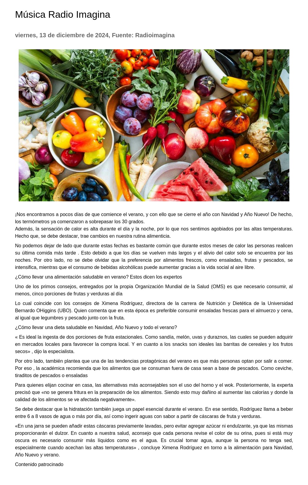 Música Radio Imagina 13-12-2024 Radioimagina ¡ Nos encontramos a pocos días de que comience el verano, y con ello que se cierre el año con Navidad y Año Nuevo! De hecho, los termómetros ya comenzaron a sobrepasar los 30 grados. Además, ... |