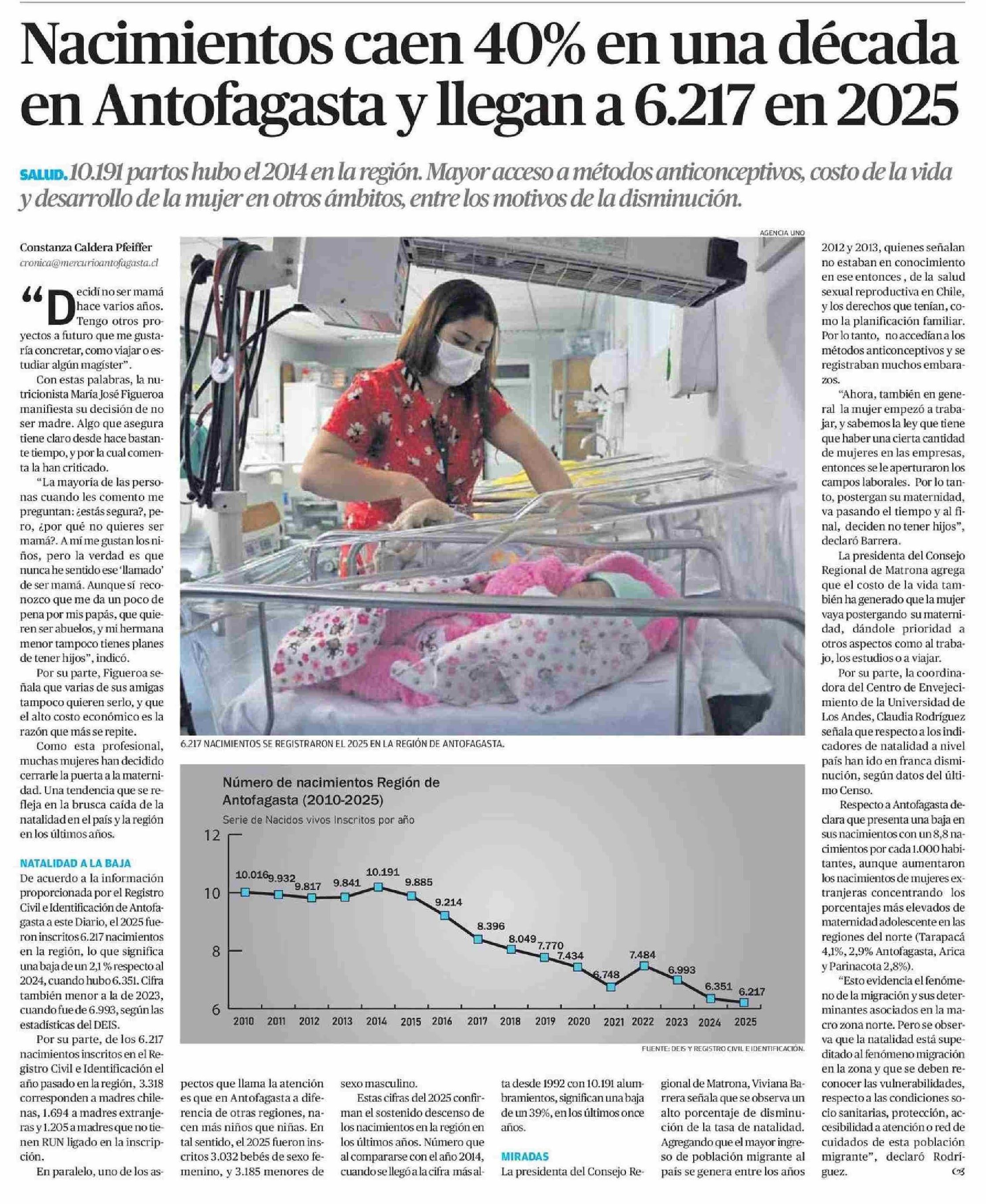 Nacimientos caen 40% en una década en Antofagasta y llegan a 6.217 en 2025
