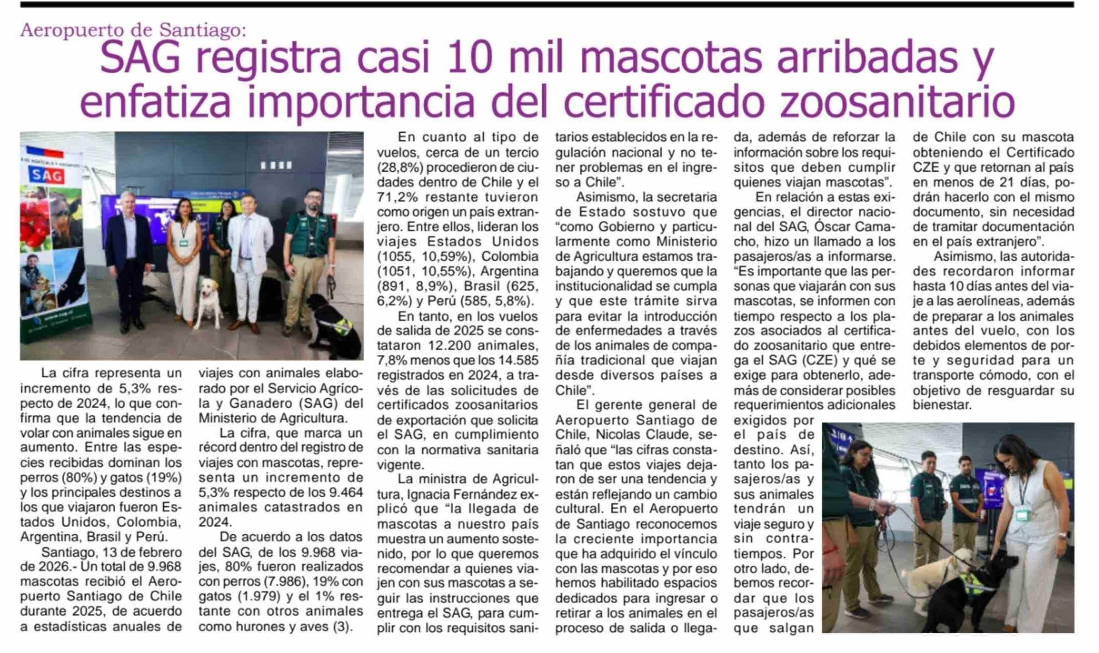 SAG registra casi 10 mil mascotas arribadas y enfatiza importancia del certificado zoosanitario