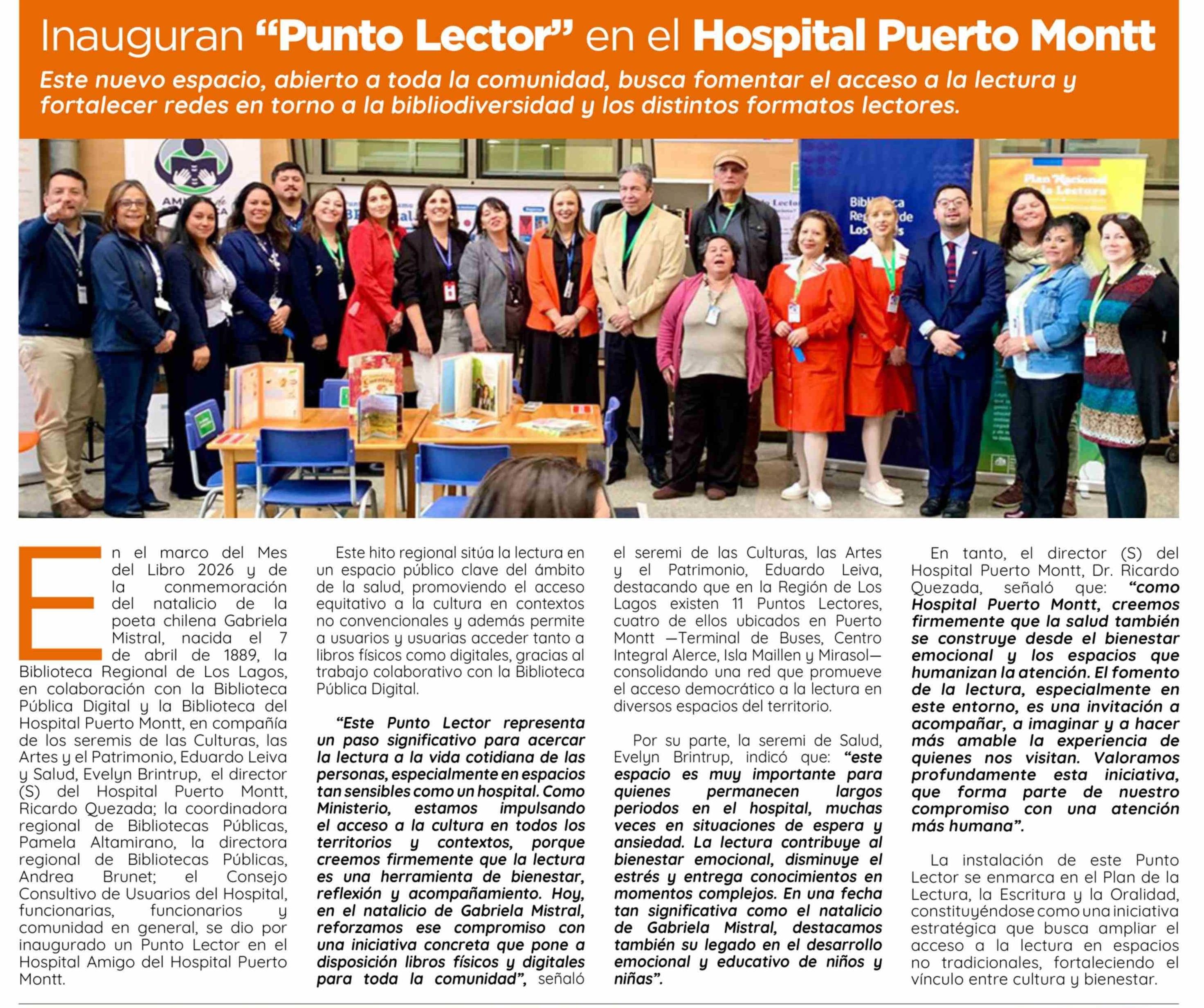 Inauguran "Punto Lector" en el Hospital Puerto Montt