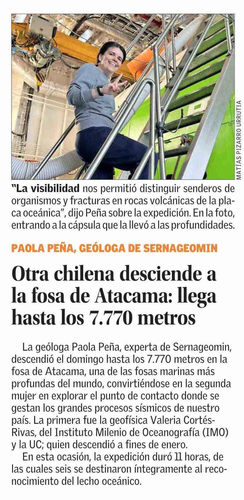 Otra chilena desciende a la fosa de Atacama: llega hasta los 7.770 metros