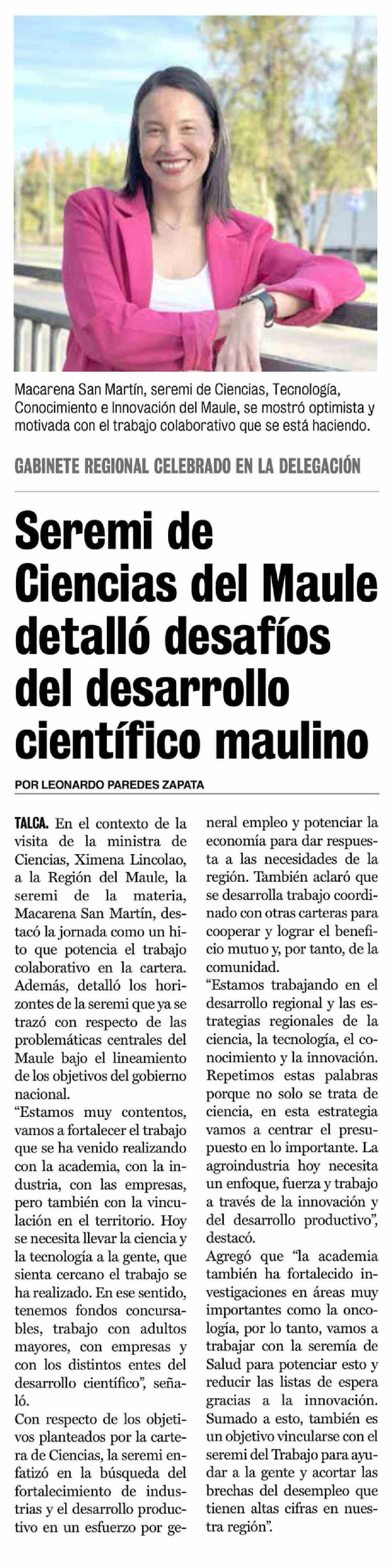 Título: Seremi de Ciencias del Maule detalló desafíos del desarrollo científico maulino