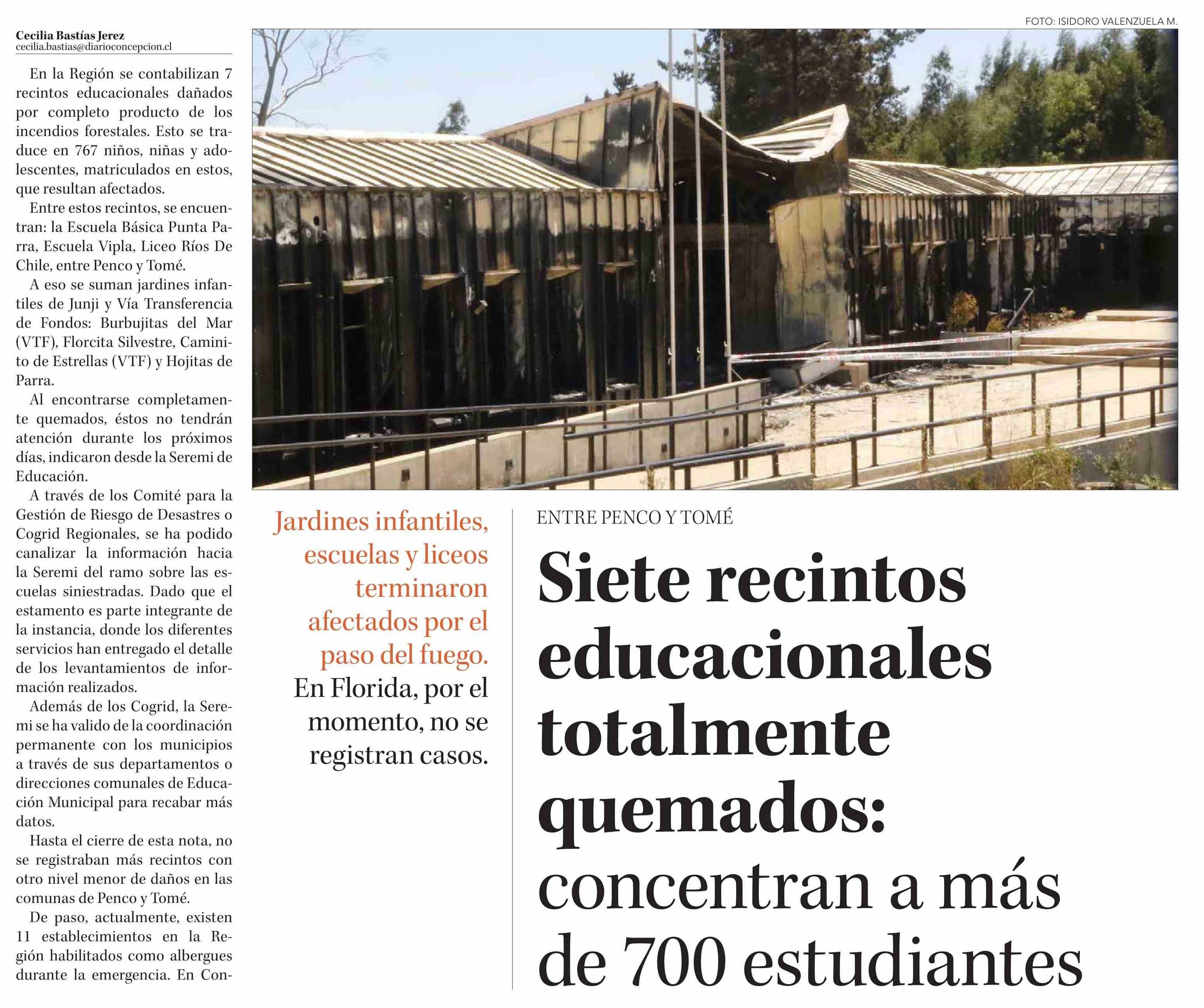 Siete recintos educacionales totalmente quemados: concentran a más de 700 estudiantes