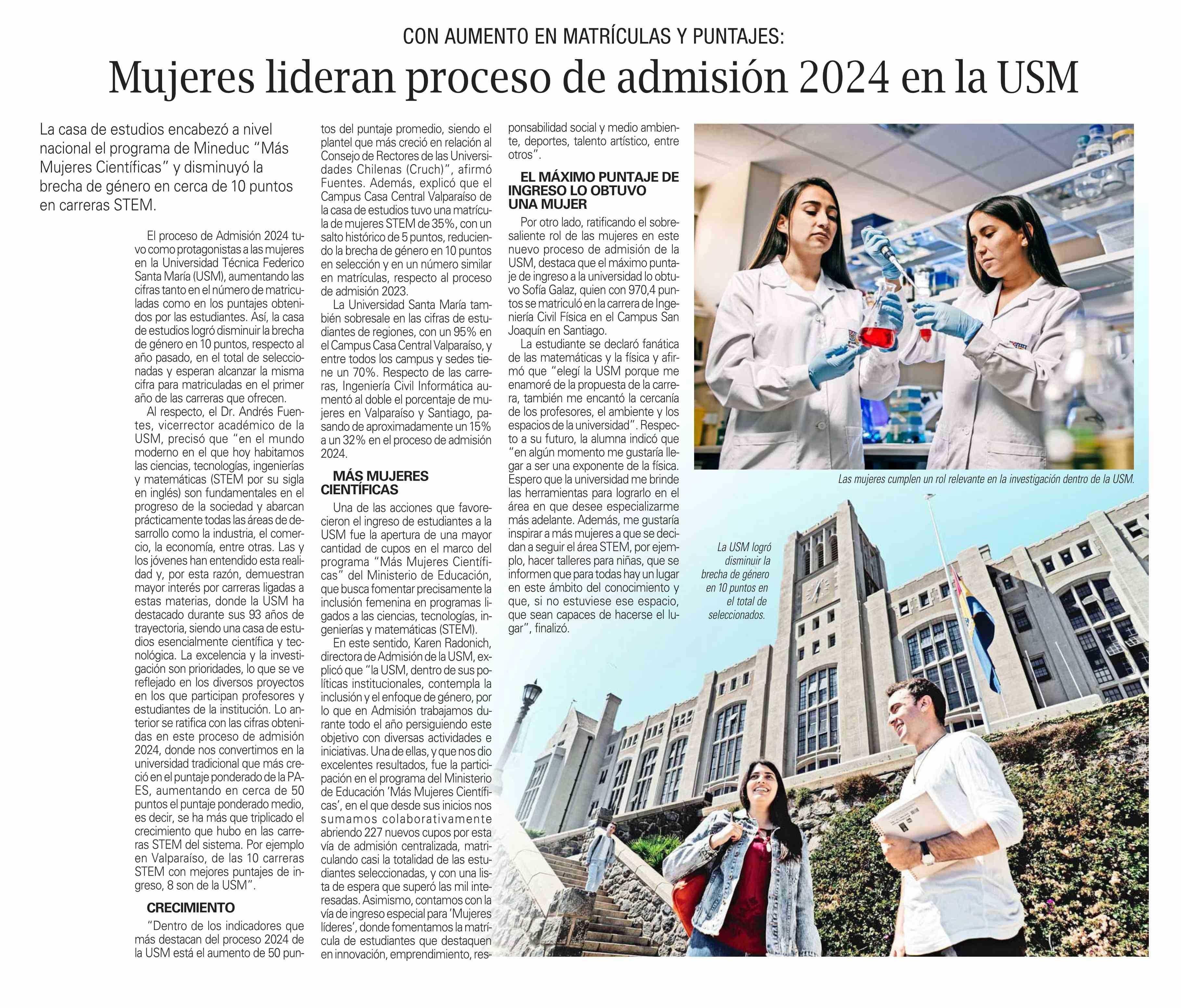 Mujeres lideran proceso de admisión 2024 en la USM