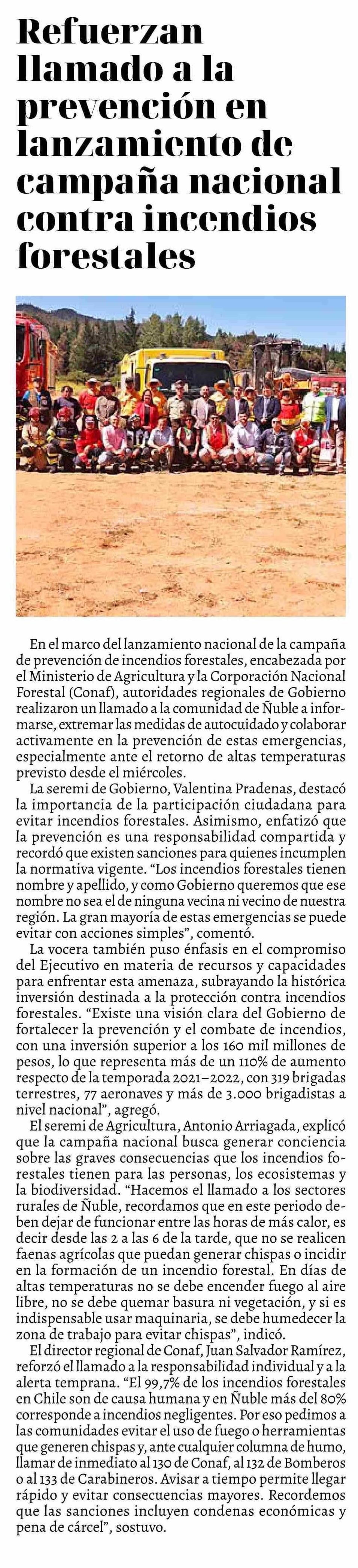 Refuerzan llamado a la prevención en lanzamiento de campaña nacional contra incendios forestales
