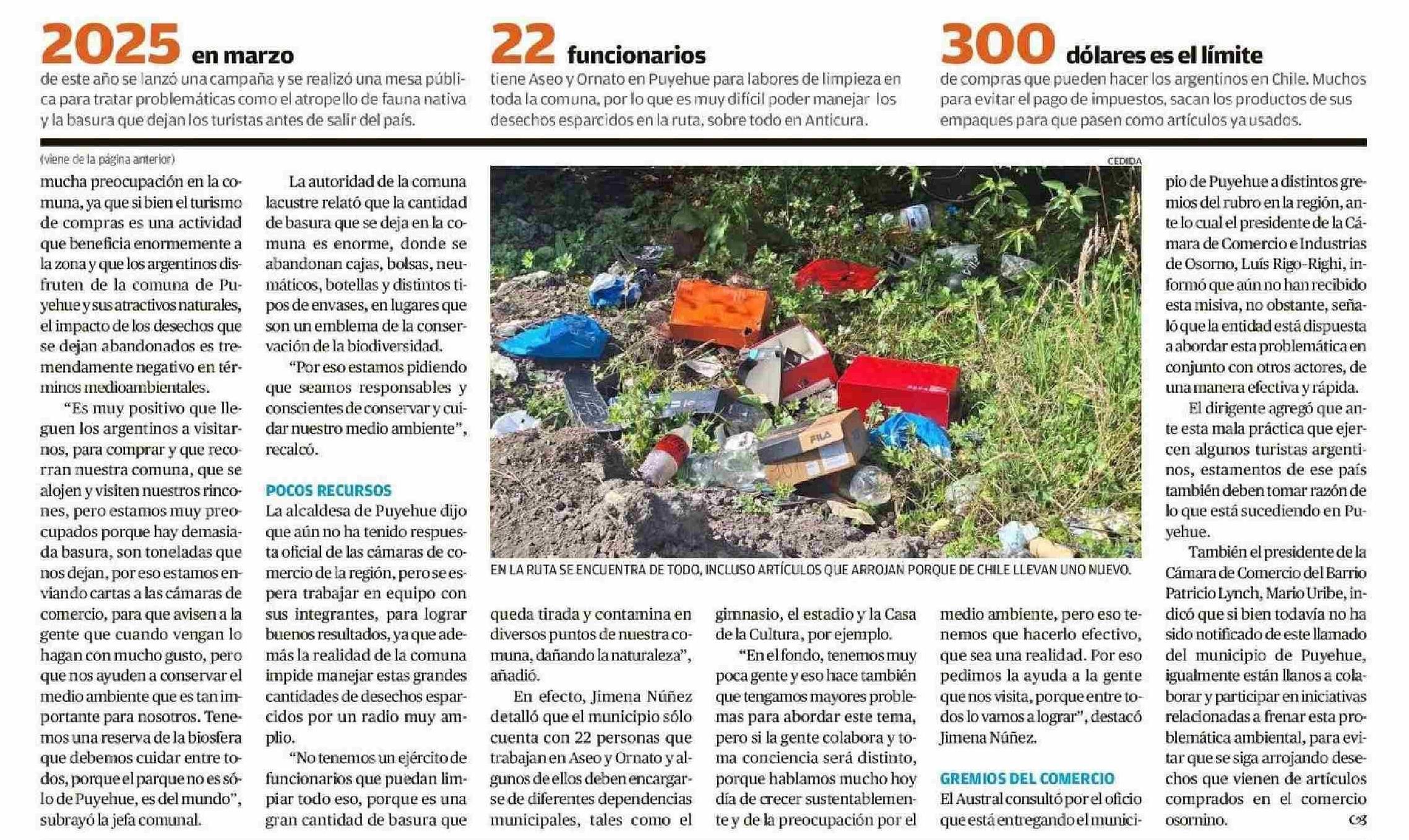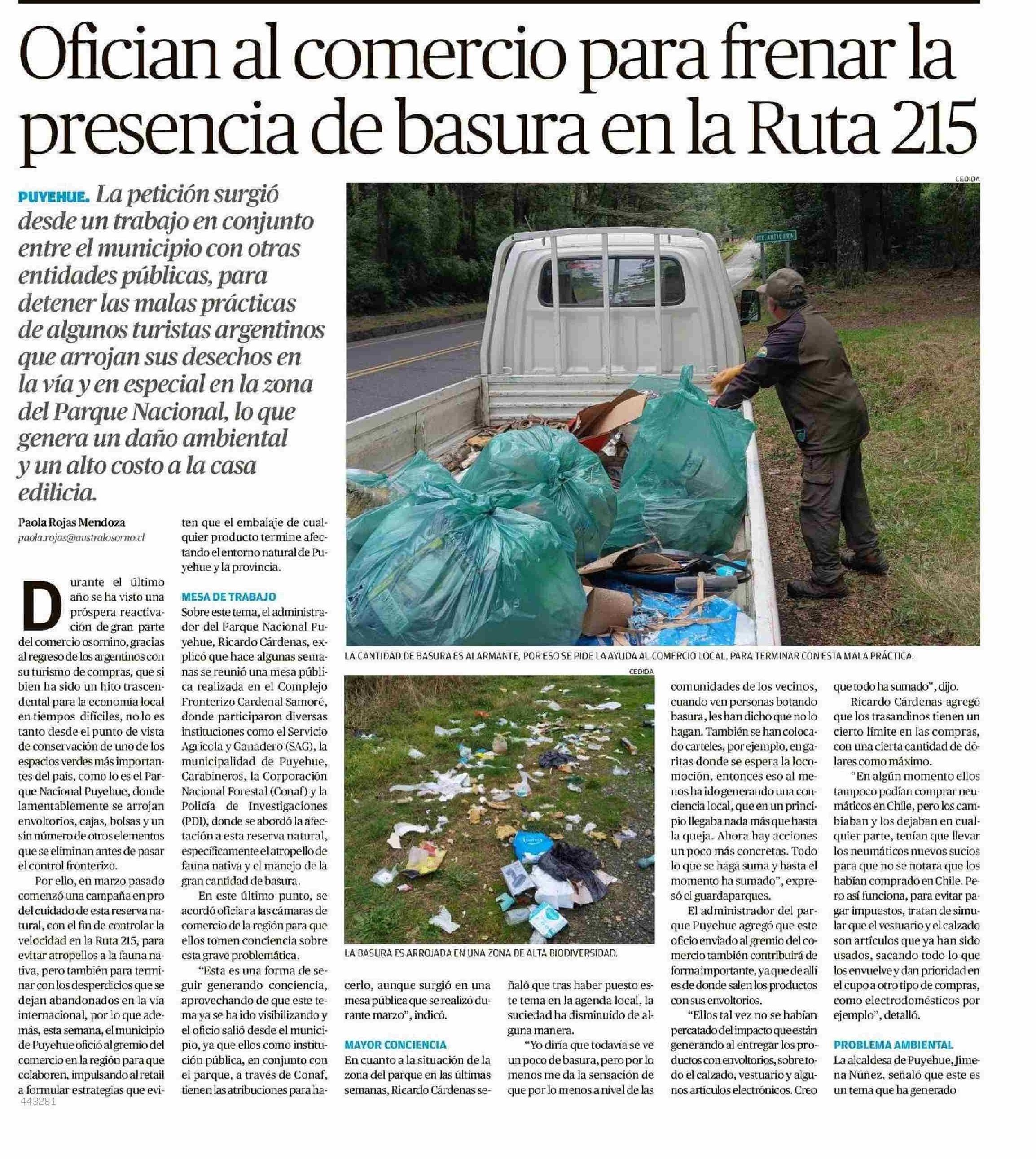 Ofician al comercio para frenar la presencia de basura en la Ruta 215