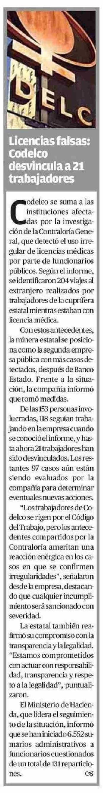 Licencias falsas: Codelco desvincula a 21 trabajadores