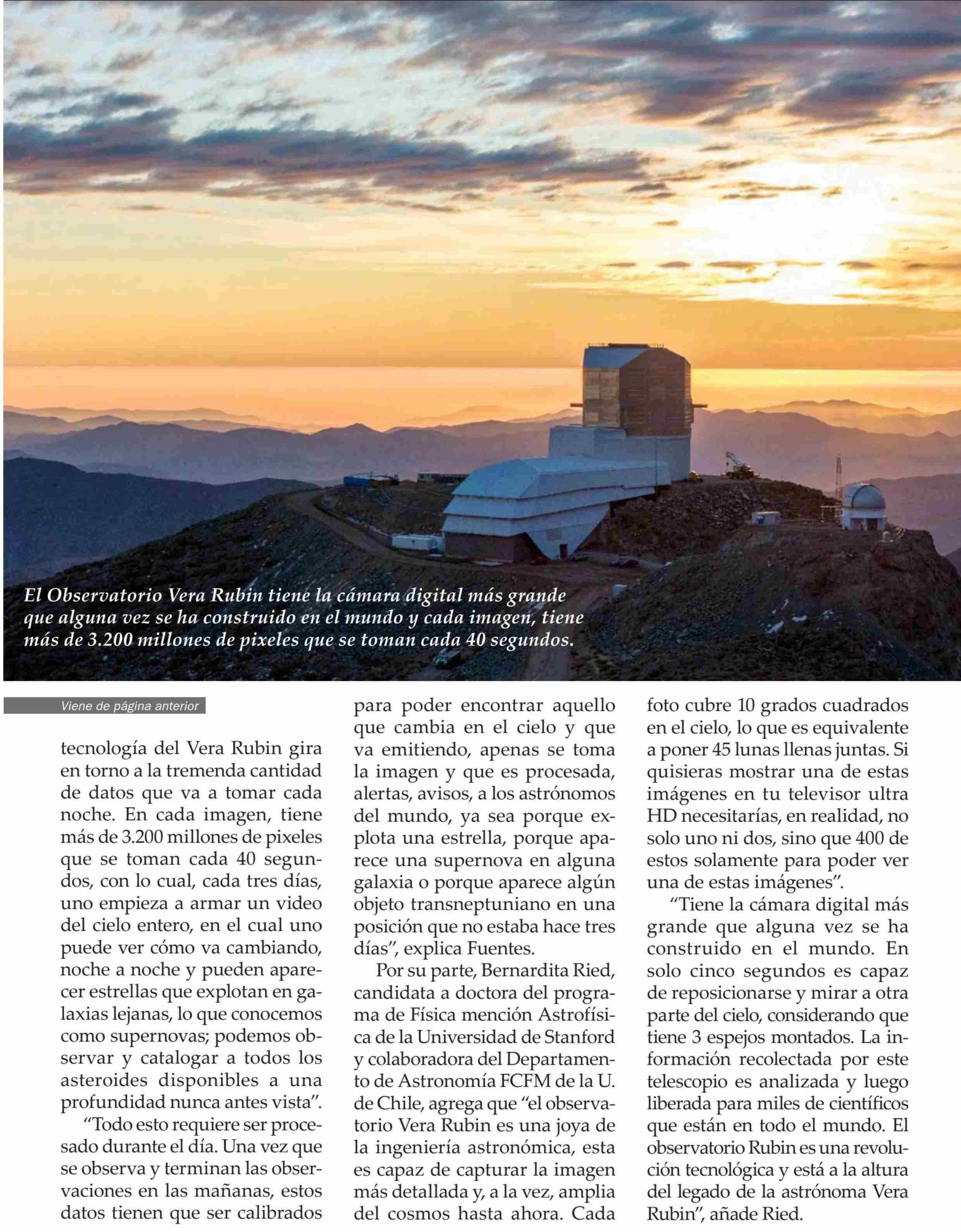 Astronomo U. de Chile analizará los millones de datos del Observatorio Vera Rubin