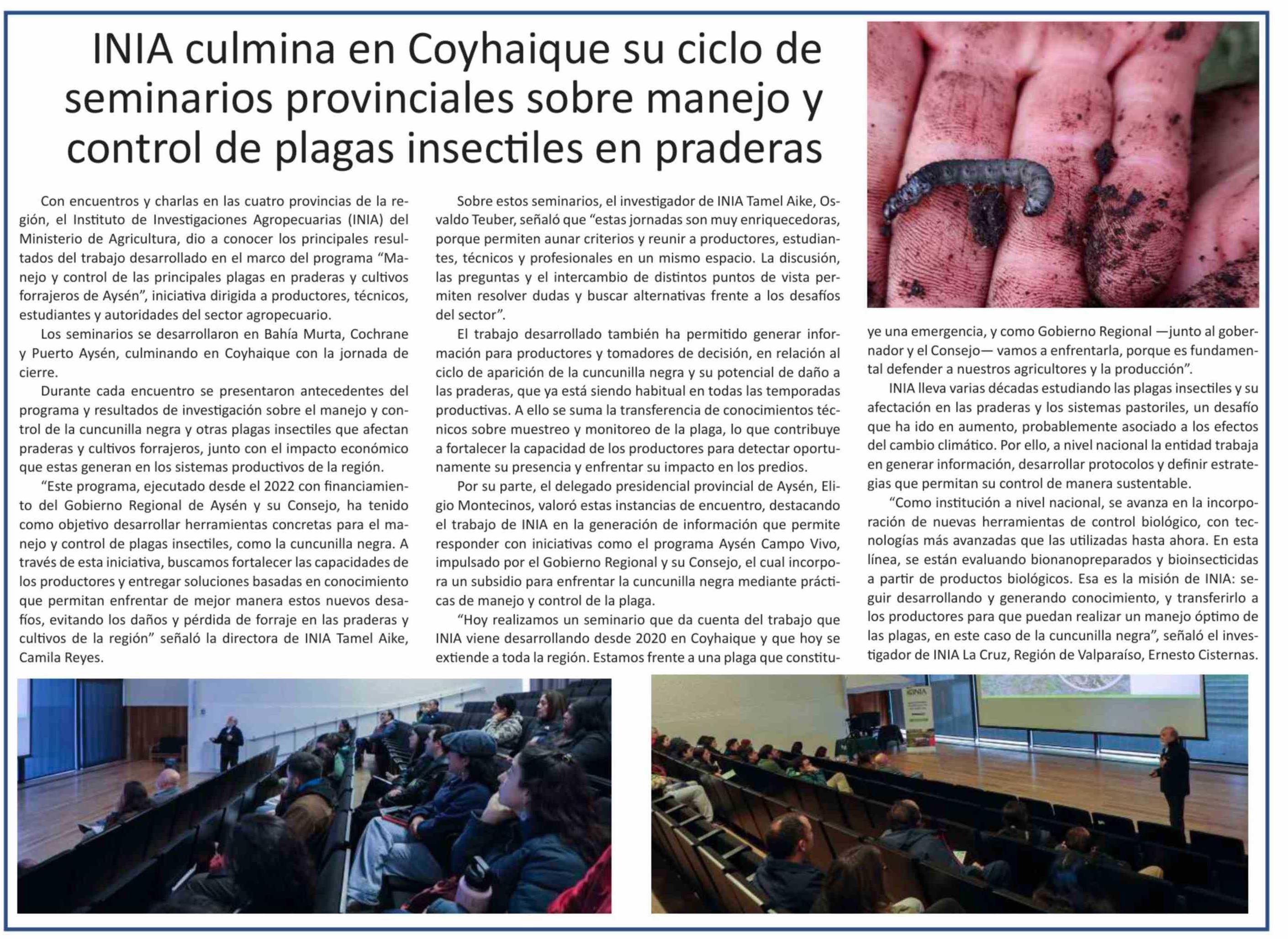 INIA culmina en Coyhaique su ciclo de seminarios provinciales sobre manejo y control de plagas insectiles en praderas