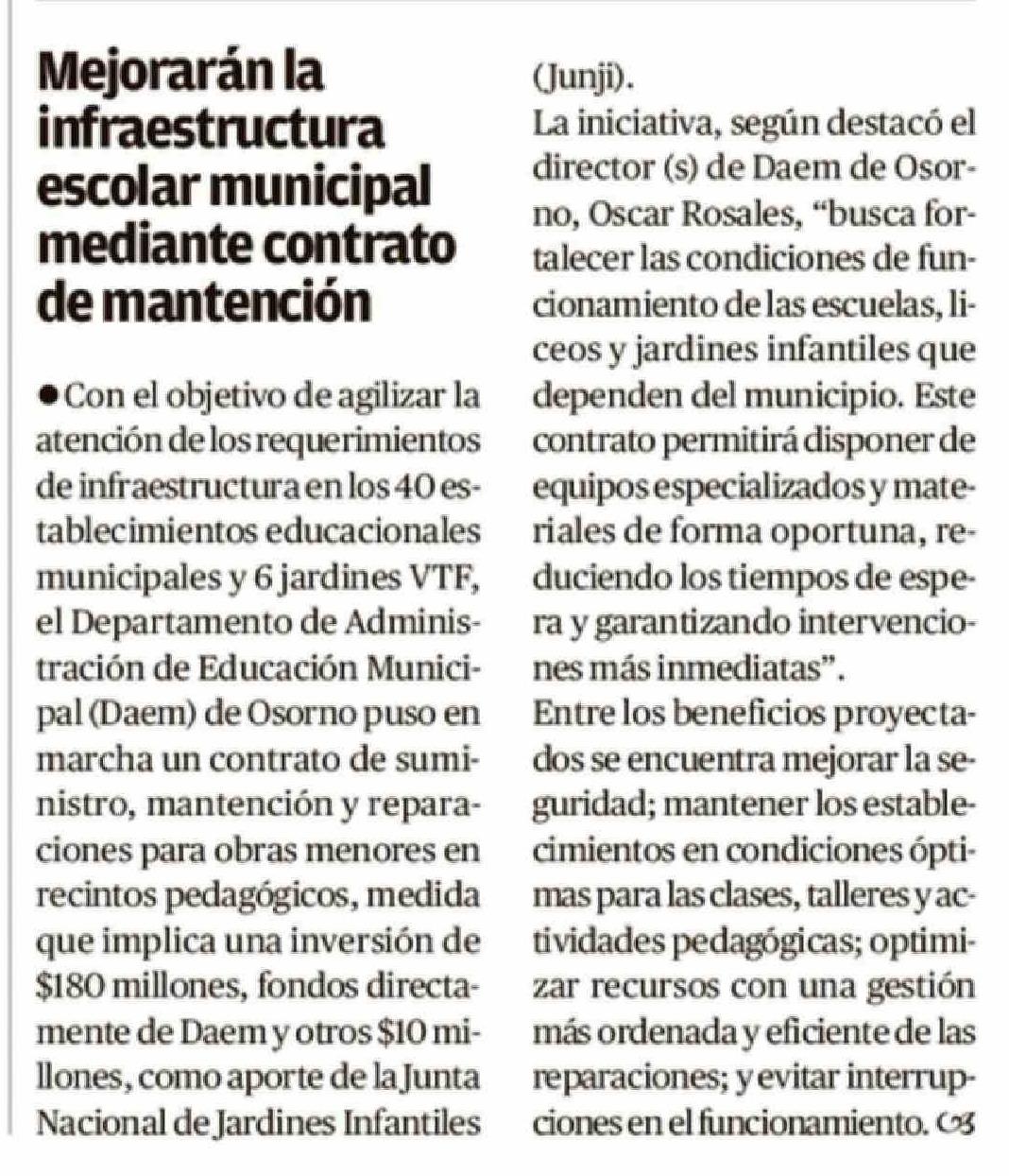 Mejorarán la infraestructura escolar municipal mediante contrato de mantención