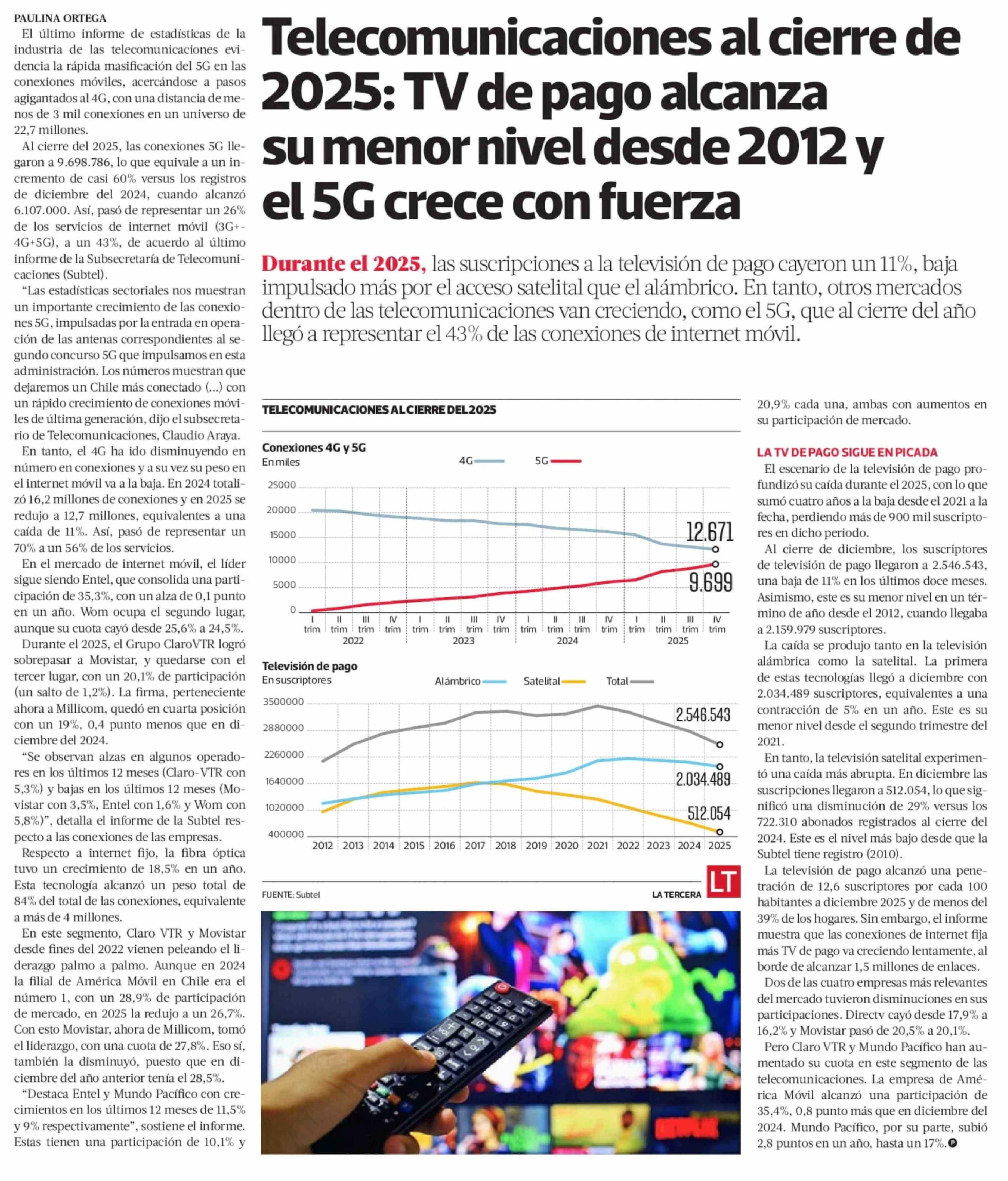 Telecomunicaciones al cierre de 2025: TV de pago alcanza su menor nivel desde 2012 y el 5G crece con fuerza