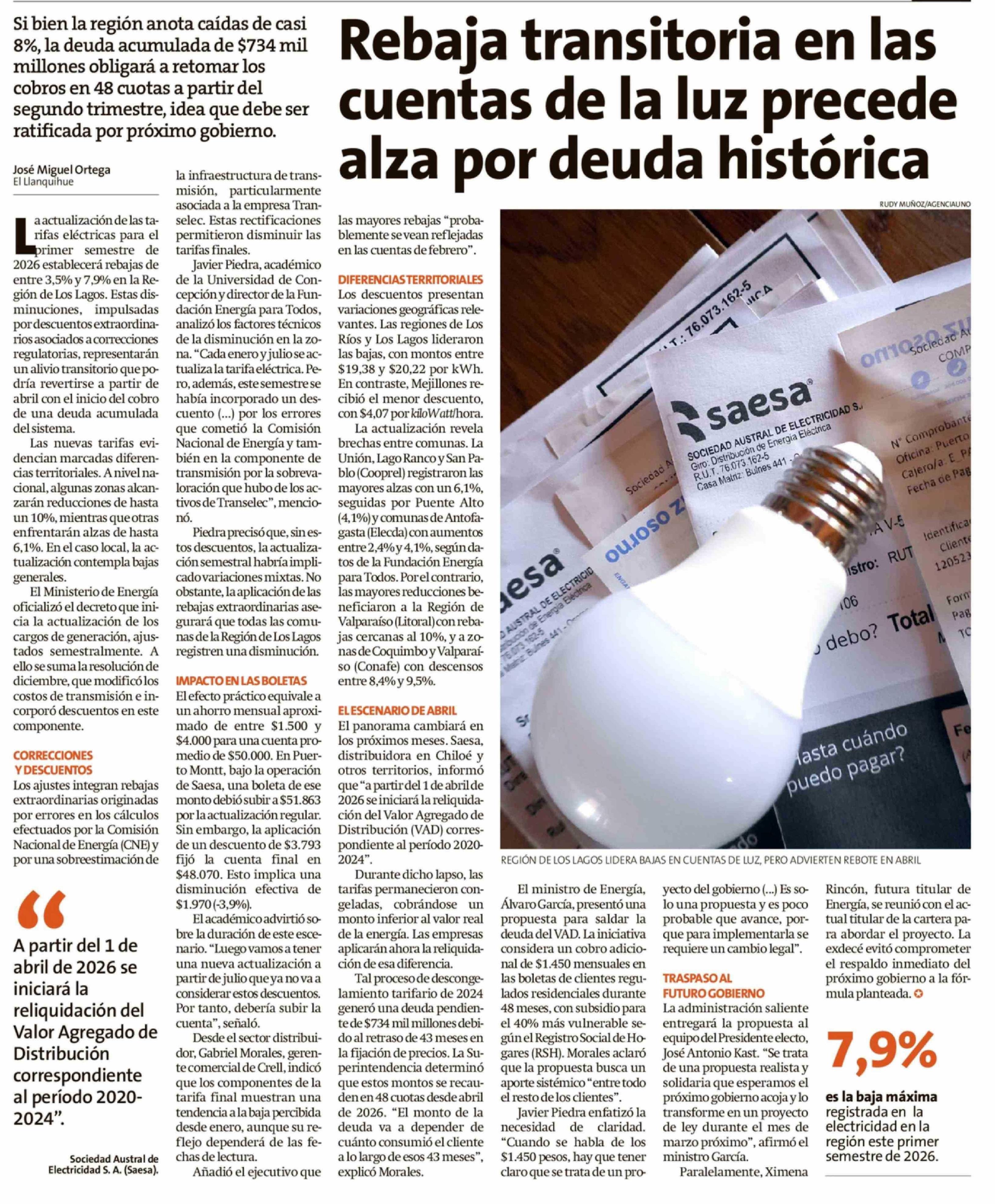 Rebaja transitoria en las cuentas de la luz precede alza por deuda histórica