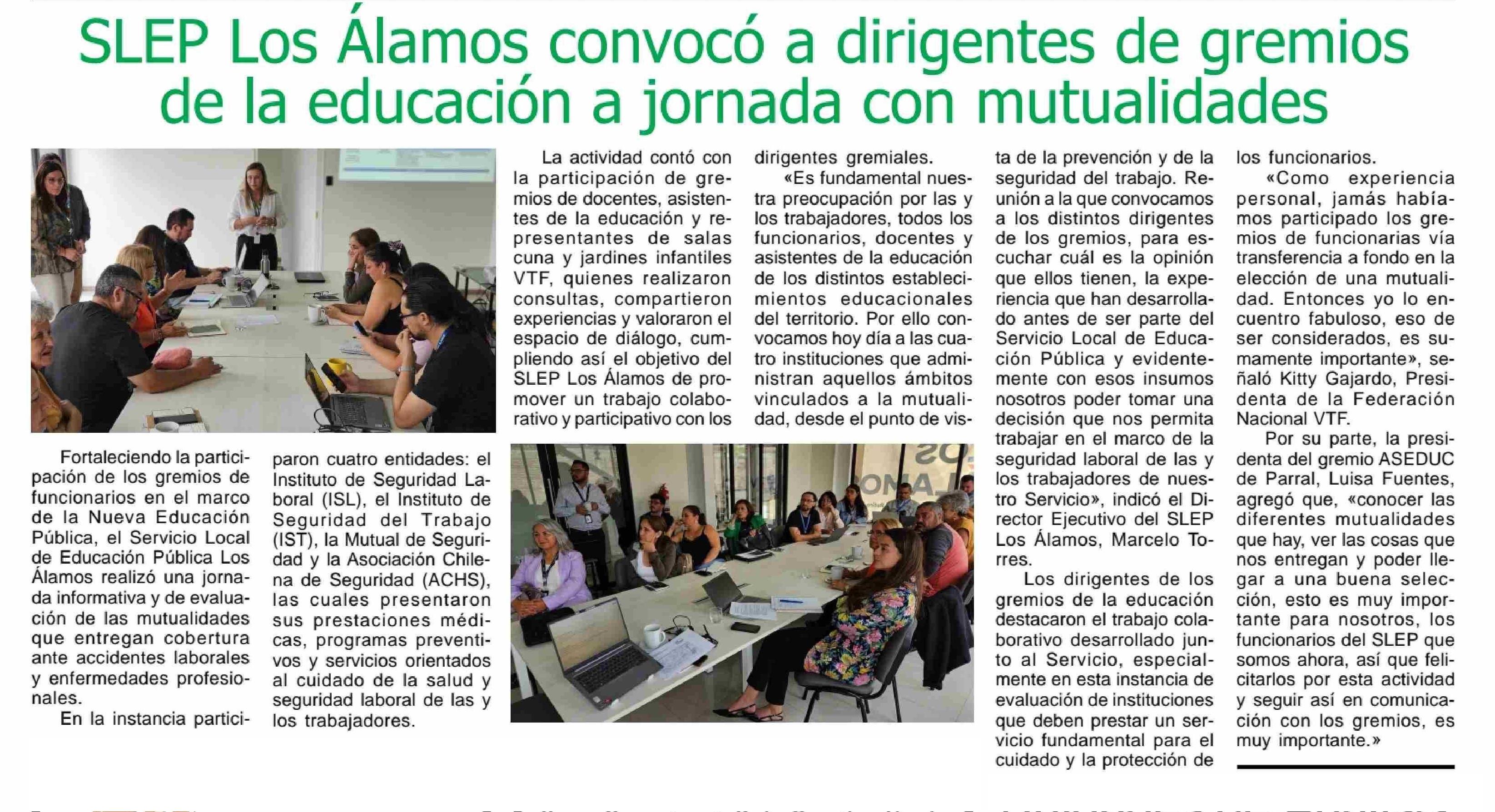 SLEP Los Álamos convocó a drgentes de gremios de la educadón a jornada con mutuahdades