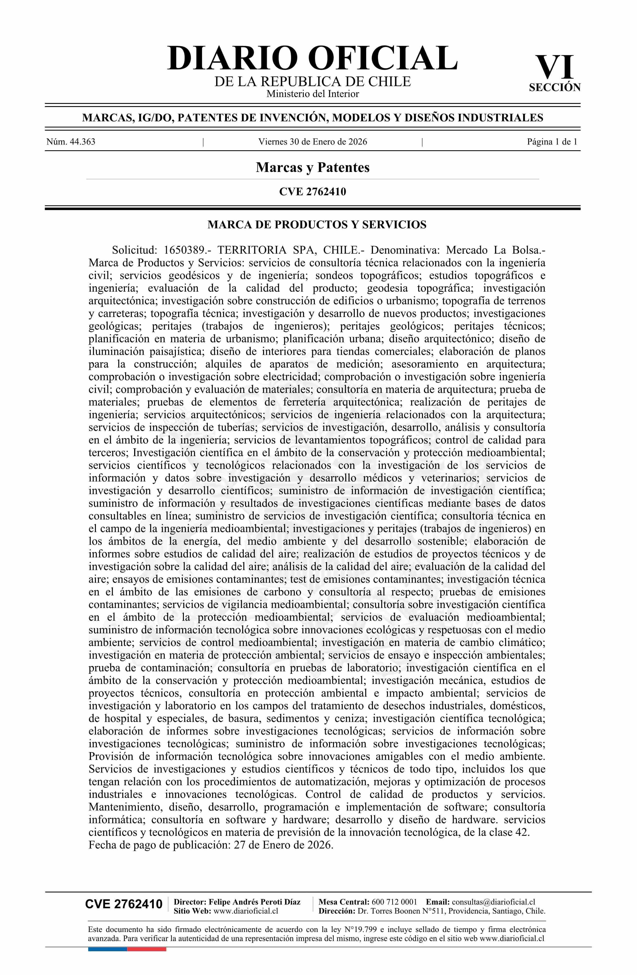 Diario Oficial Edición Electrónica (Diario Oficial de Chile - 6 Marcas Y Patentes)