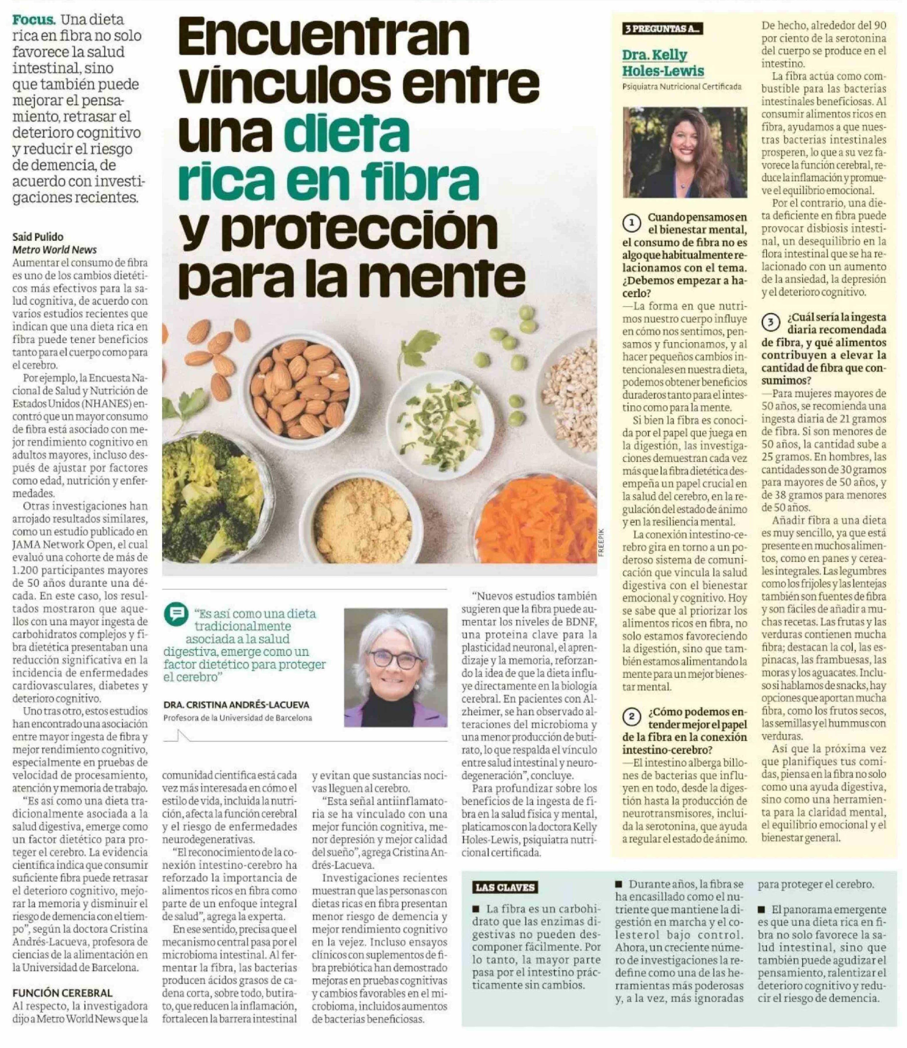 Encuentran vinculos entre una dieta rica en fibra y protección para la mente