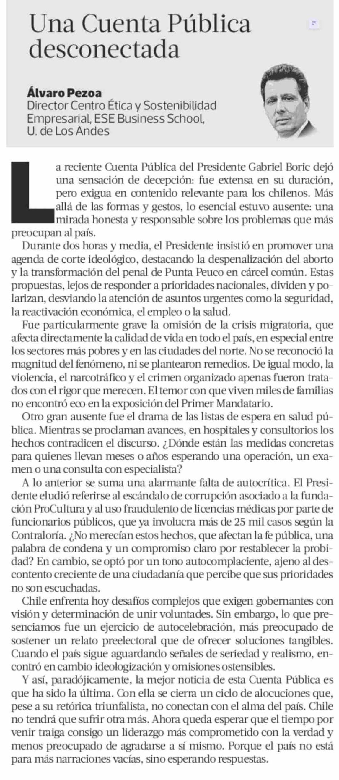 Columnas de Opinión: Una Cuenta Pública desconectada