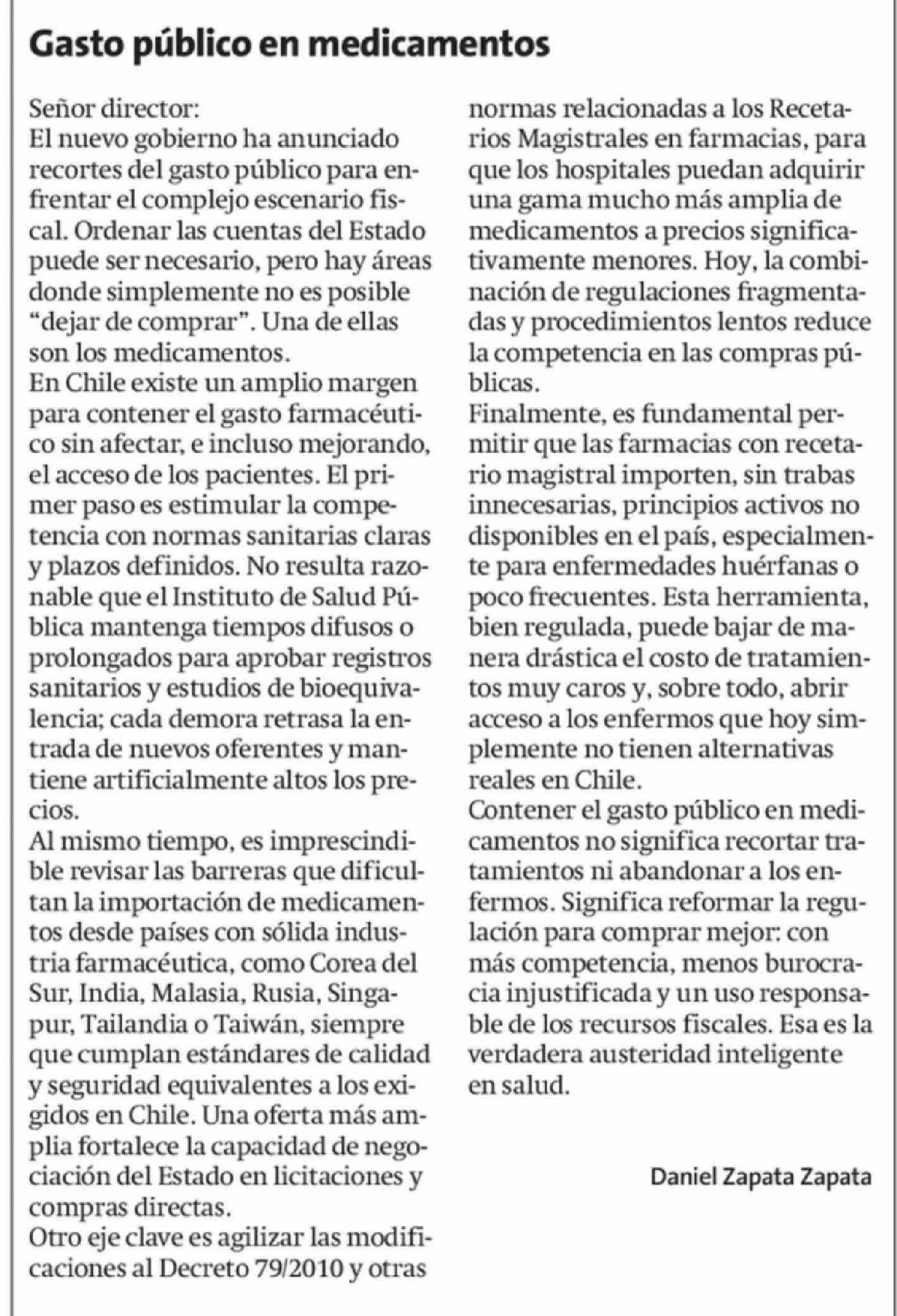 Cartas: Gasto público en medicamentos