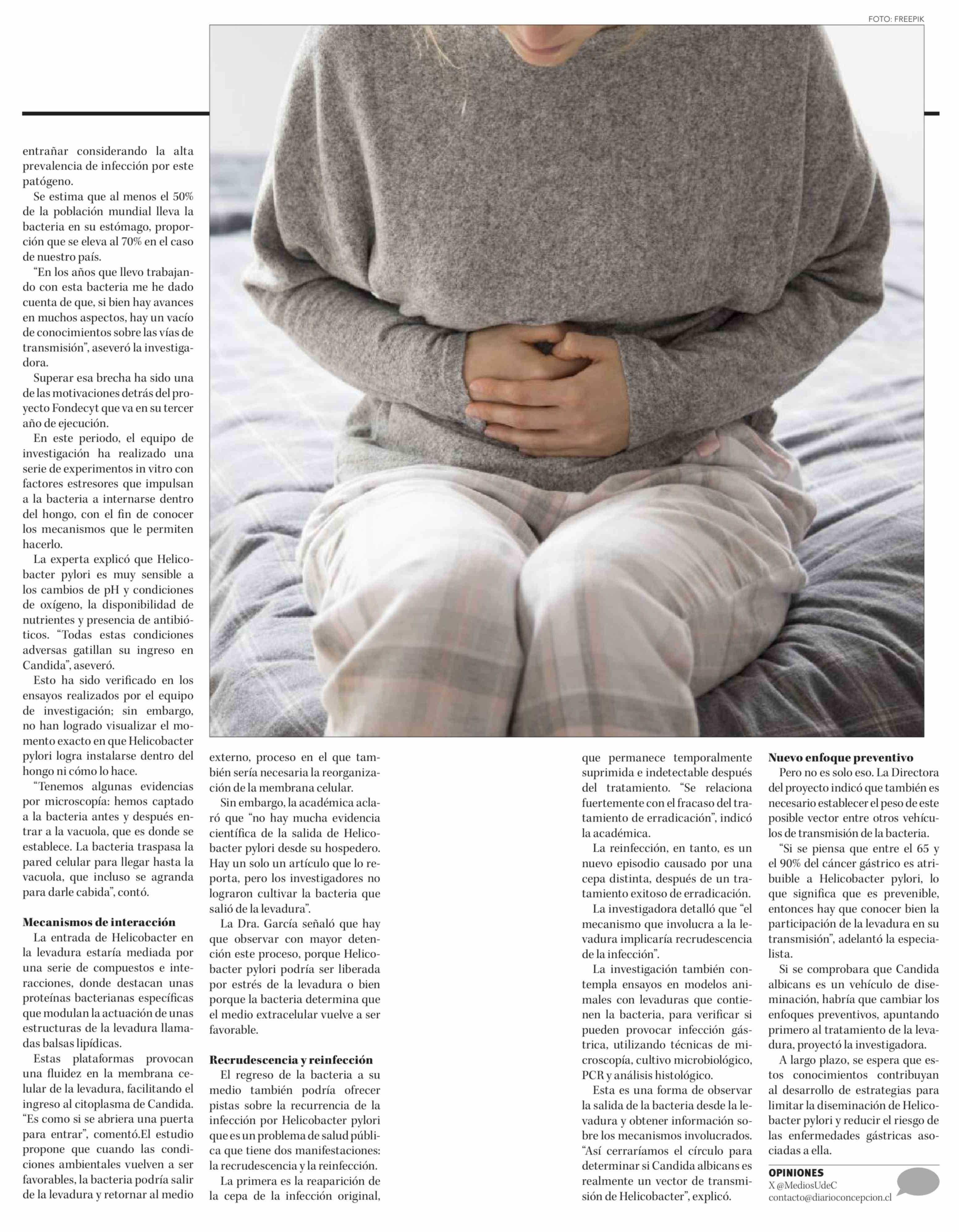 Investigación UdeC busca esclarecer relación entre Candida y la persistencia de la Helicobacter pylori