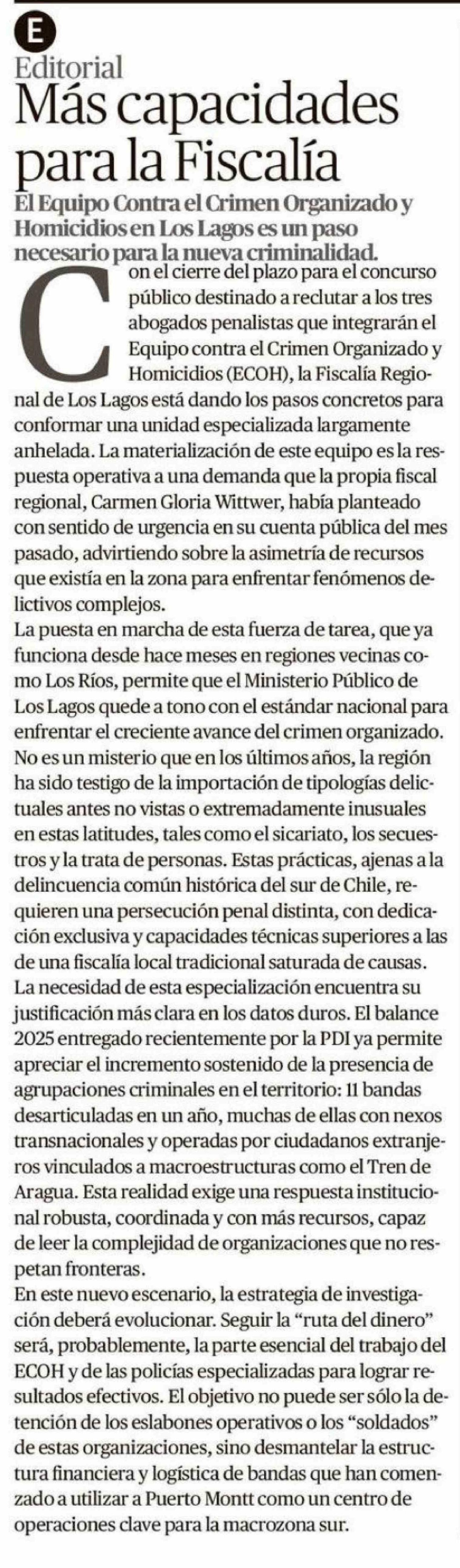 Editorial: Más capacidades para la Fiscalía