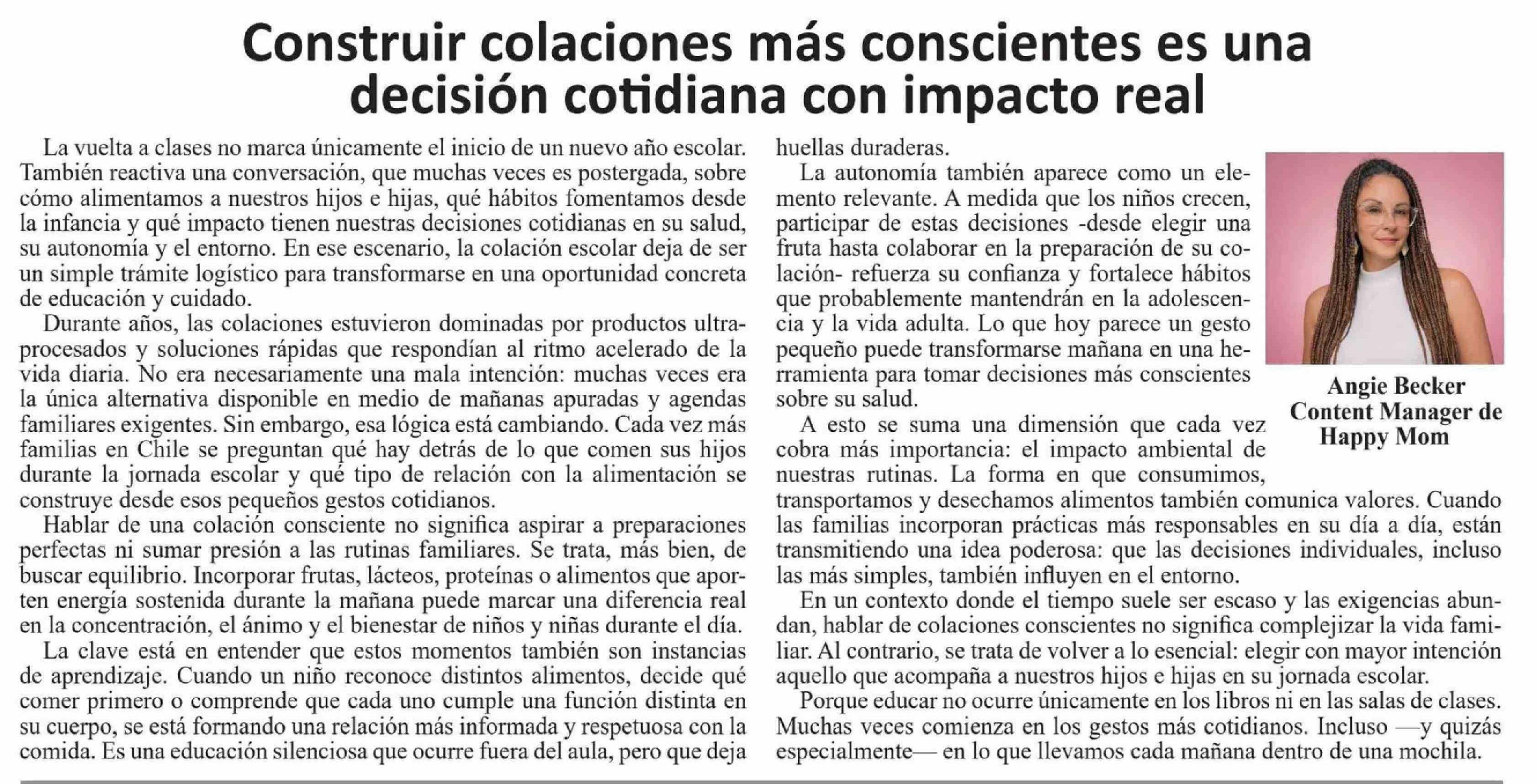 Columnas de Opinión: Construir colaciones más conscientes es una decisión cotidiana con impacto real