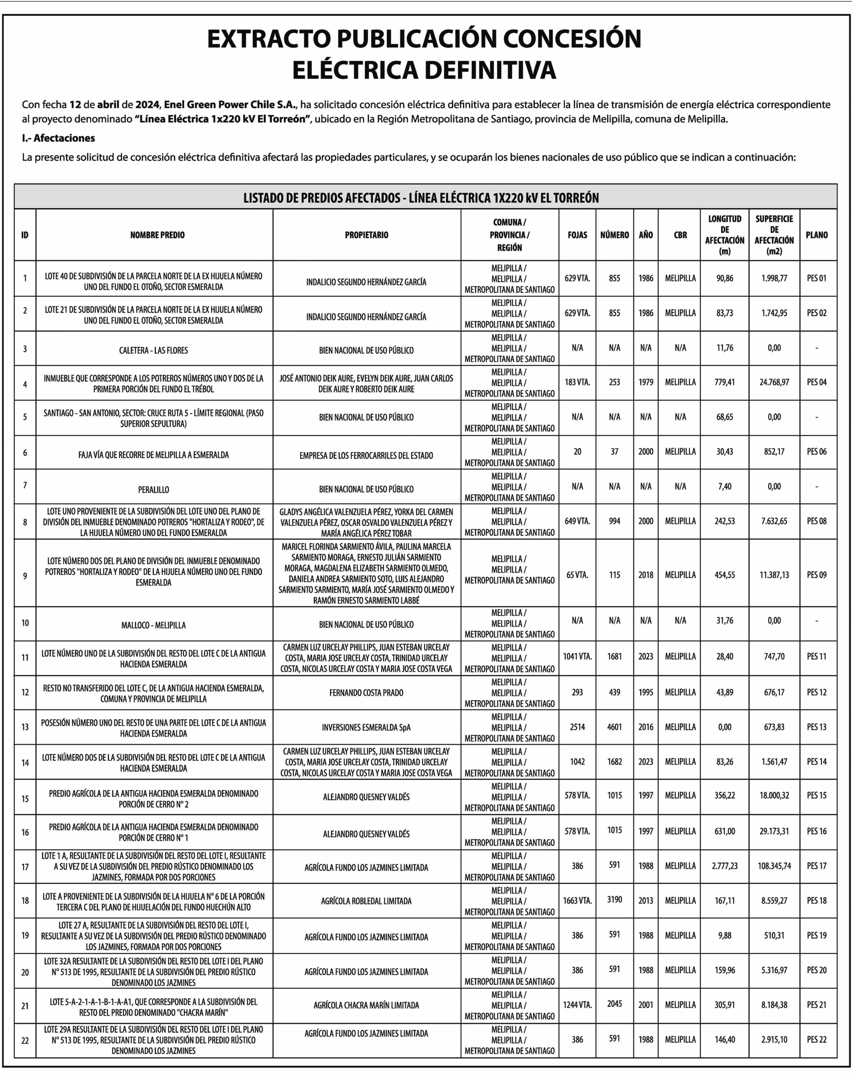 EXTRACTOS: EXTRACTO PUBLICACIÓN CONCESIÓN ELÉCTRICA DEFINITIVA