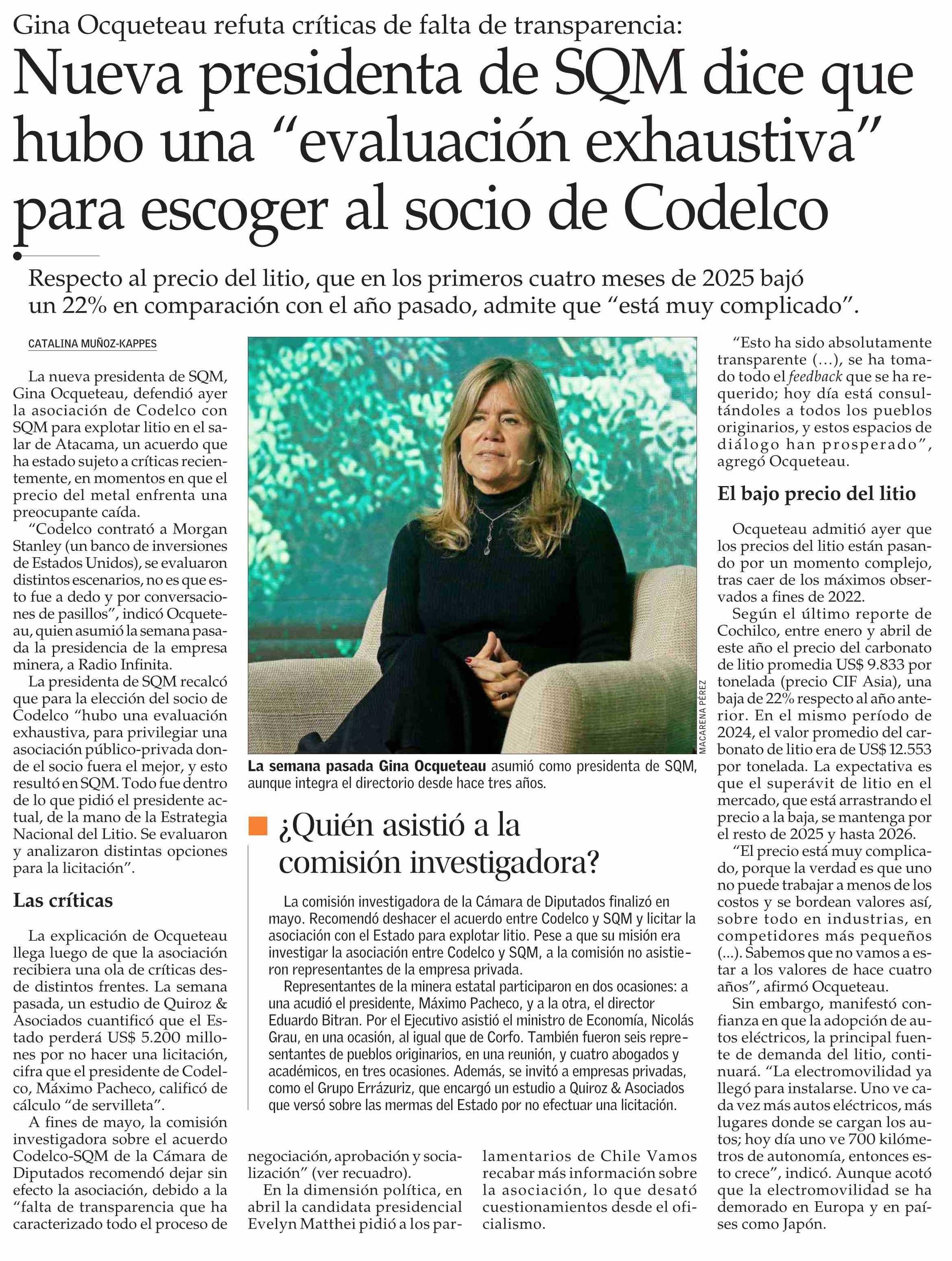 Nueva presidenta de SQM dice que hubo una “evaluación exhaustiva” para escoger al socio de Codelco