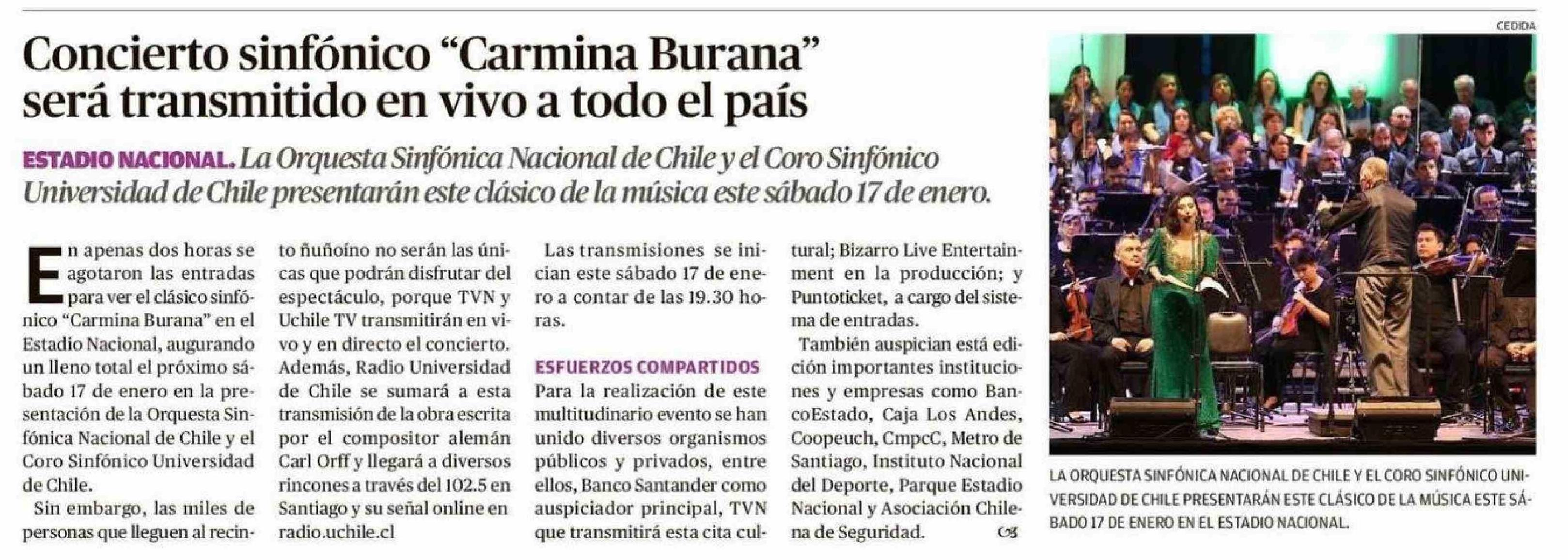 Concierto sinfónico "Carmina Burana" será transmitido en vivo a todo el país