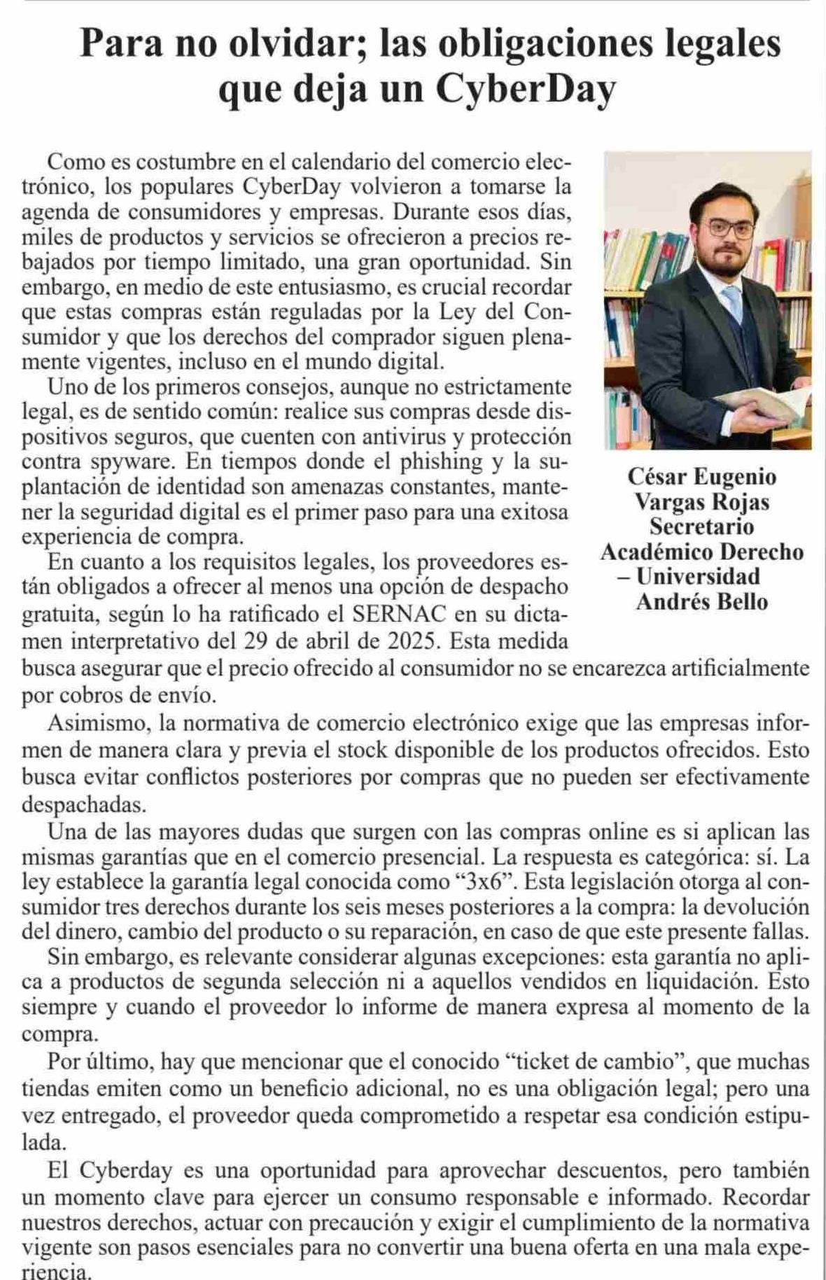 COLUMNAS DE OPINIÓN: Para no olvidar; las obligaciones legales que deja un CyberDay
