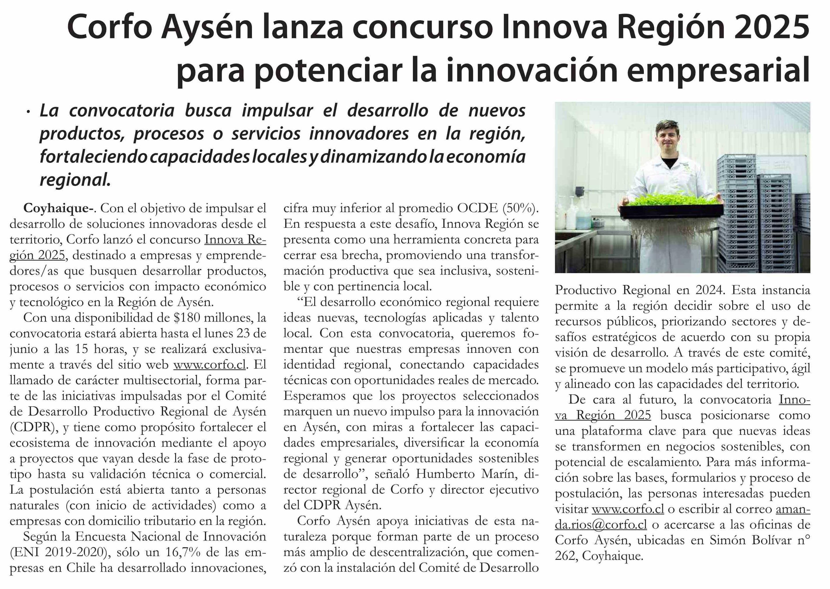 Corfo Aysén lanza concurso Innova Región 2025 para potenciar la innovación empresarial
