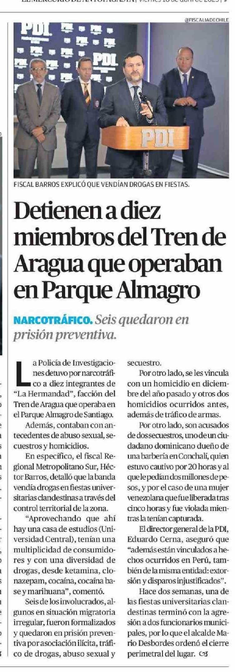 Diez Detienena miembros del Tren de Aragua que operaban en Parque Almagro