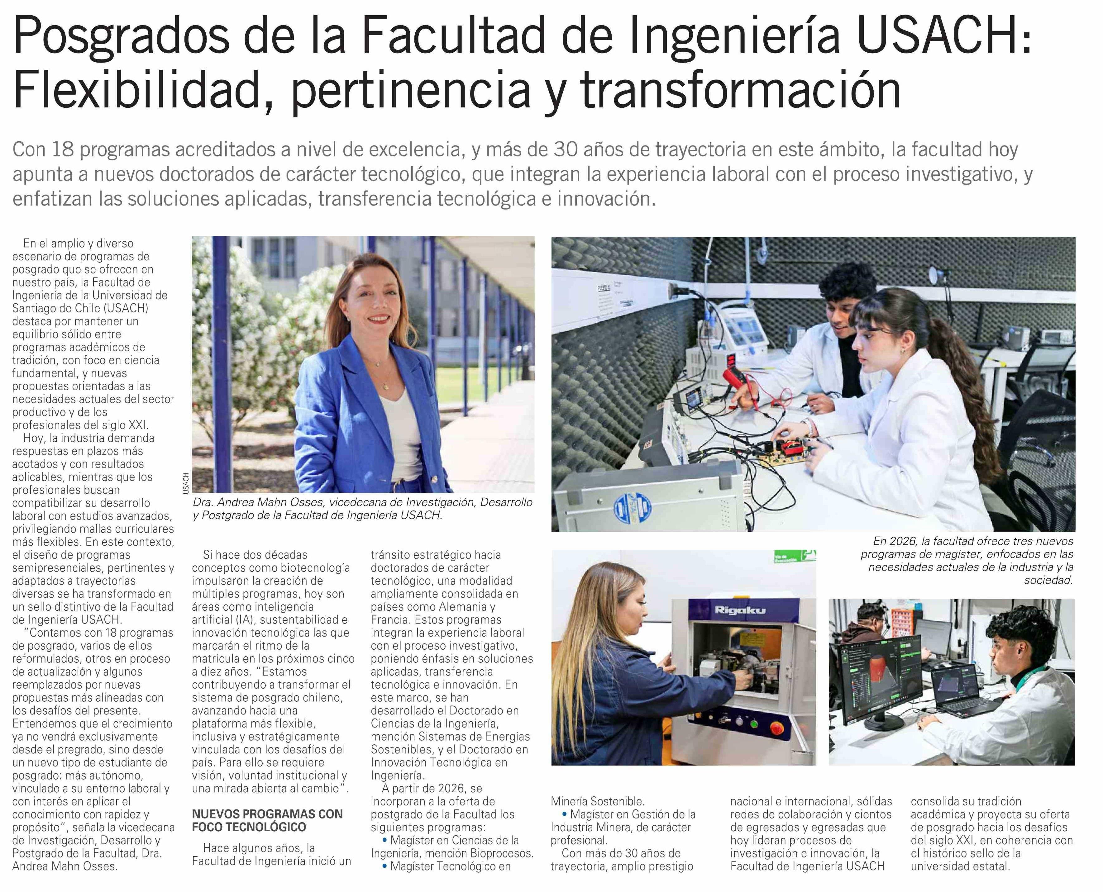 Título: Posgrados de la Facultad de Ingeniería USACH: Flexibilidad, pertinencia y transformación