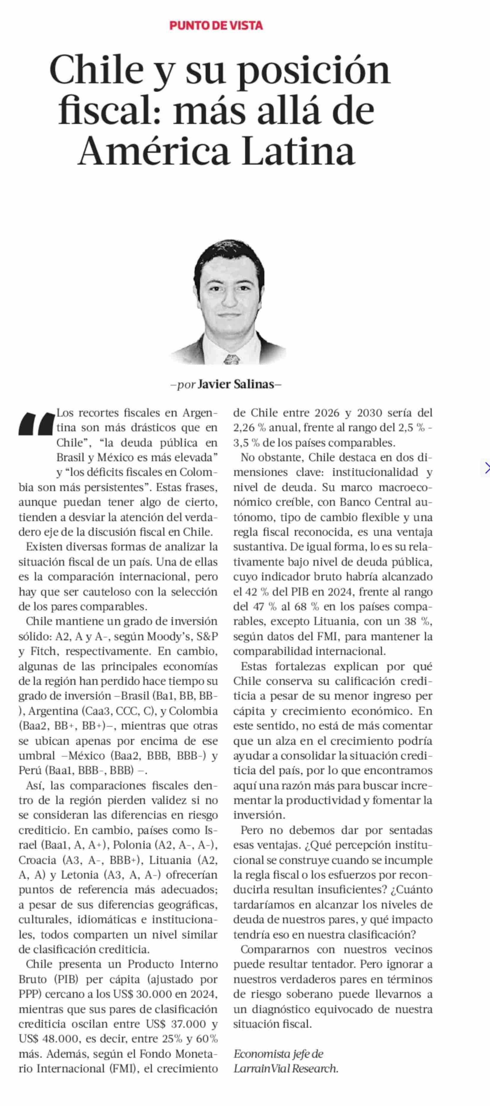 COLUMNA DE OPINIÓN: Chile y su posición fiscal: más allá de América Latina
