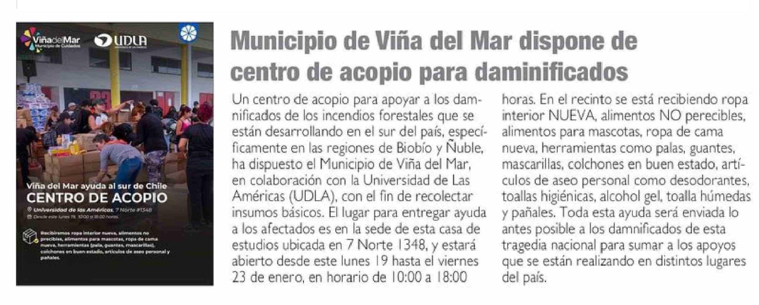 Municipio de Viña del Mar dispone de centro de acopio para daminificados