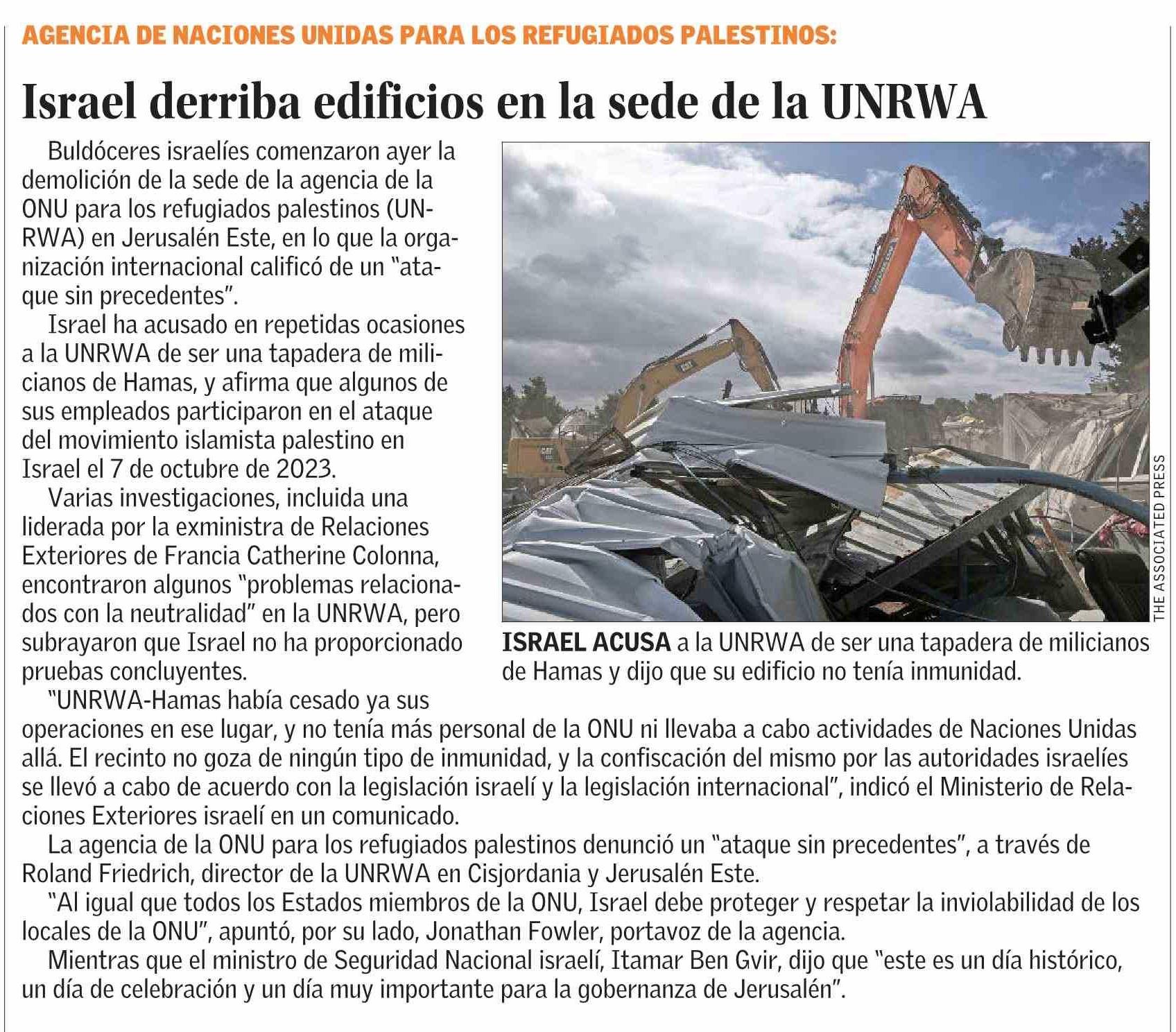 Israel derriba edificios en la sede de la UNRWA