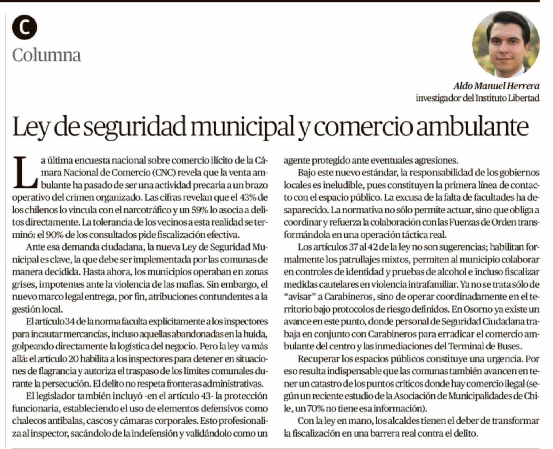 Columnas de Opinión: Ley de seguridad municipal y comercio ambulante
