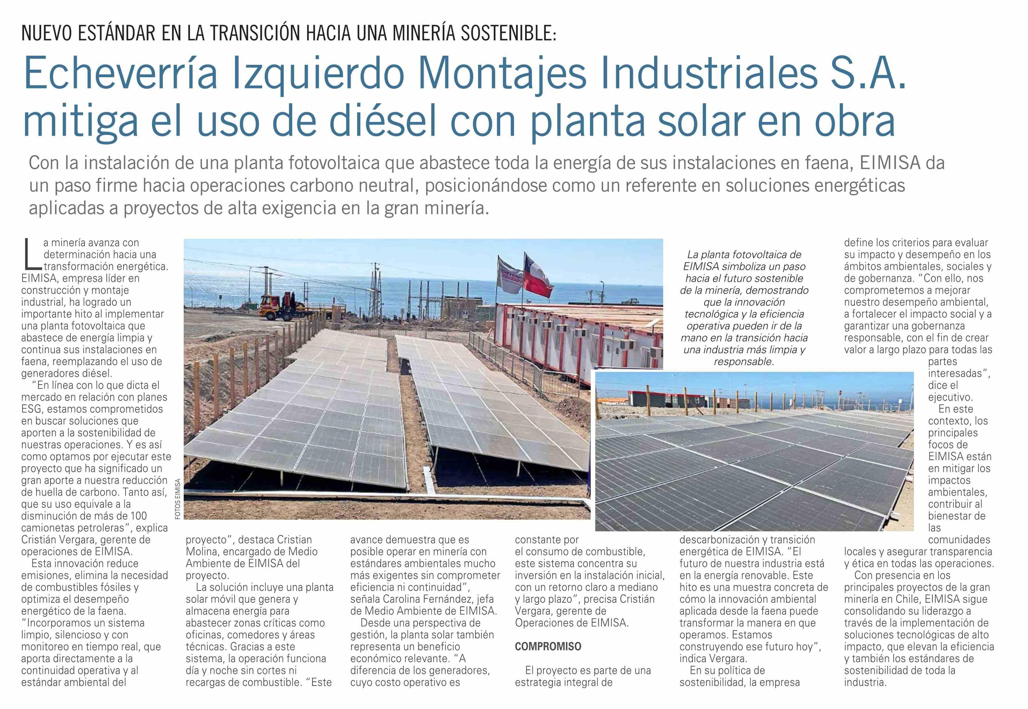 Echeverría Izquierdo Montajes Industriales S.A. mitiga el uso de diésel con planta solar en obra