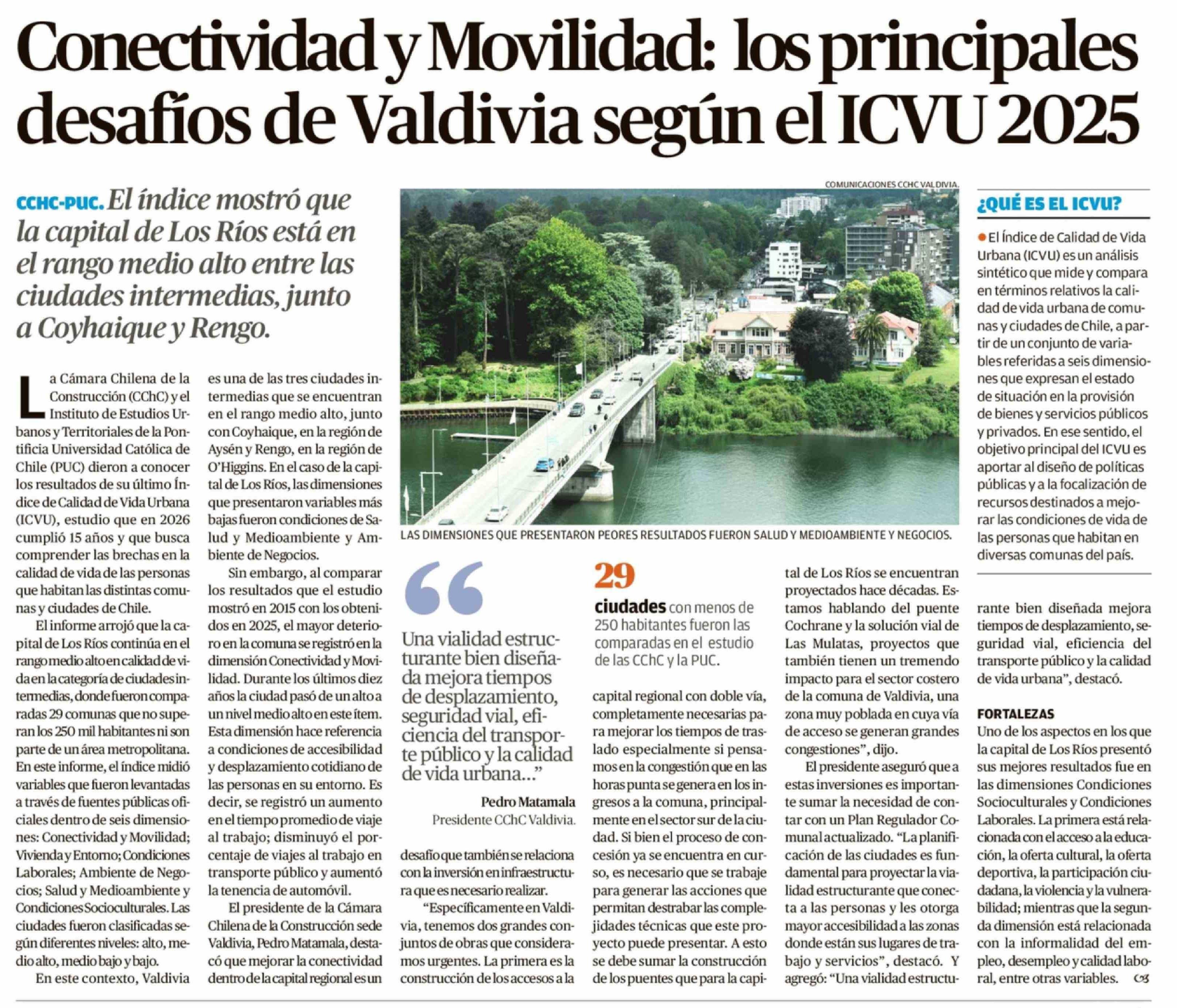Conectividad y Movilidad: los principales desafíos de Valdivia según el ICVU 2025