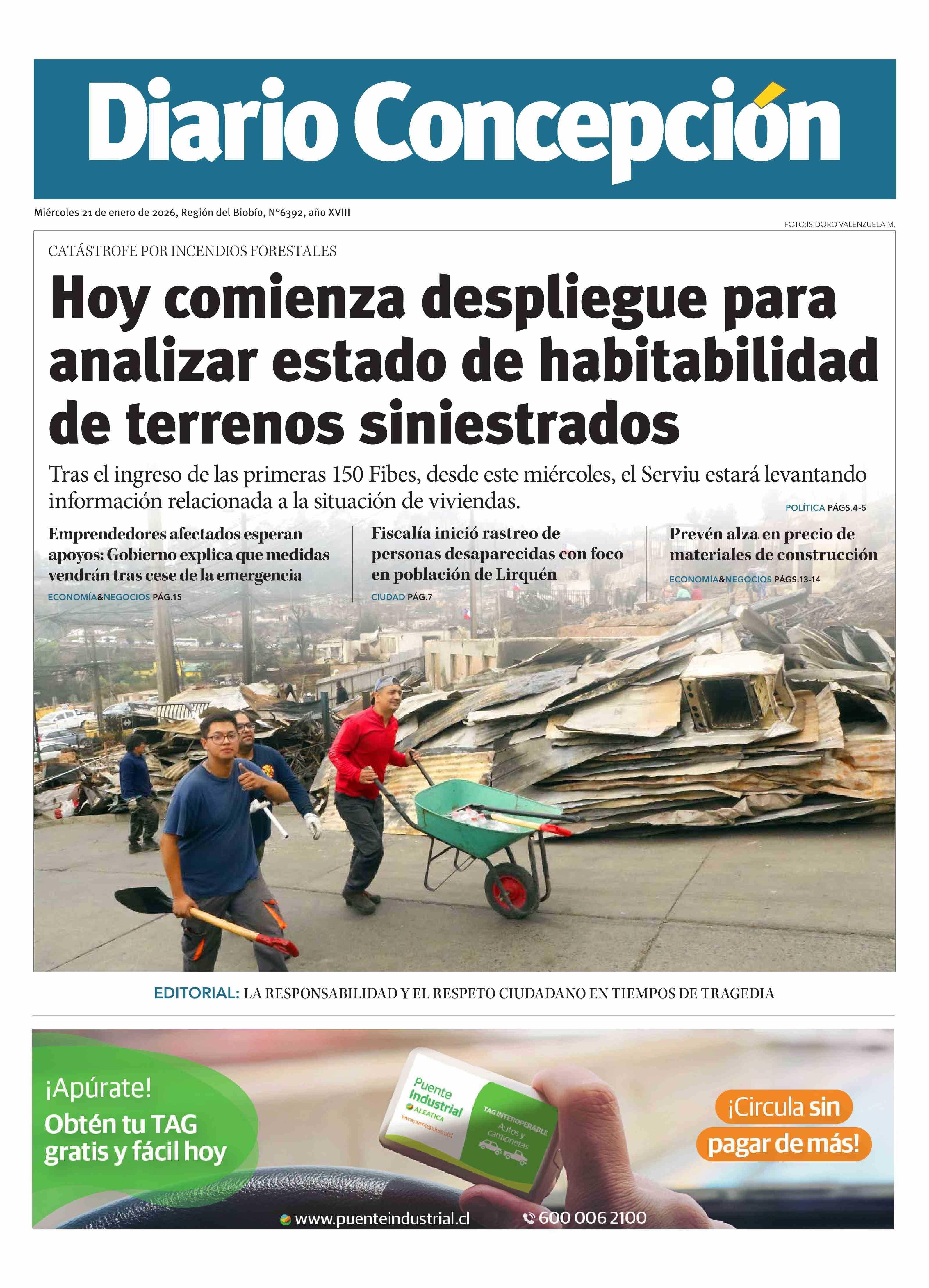 PORTADA DIARIO CONCEPCIÓN CHILE