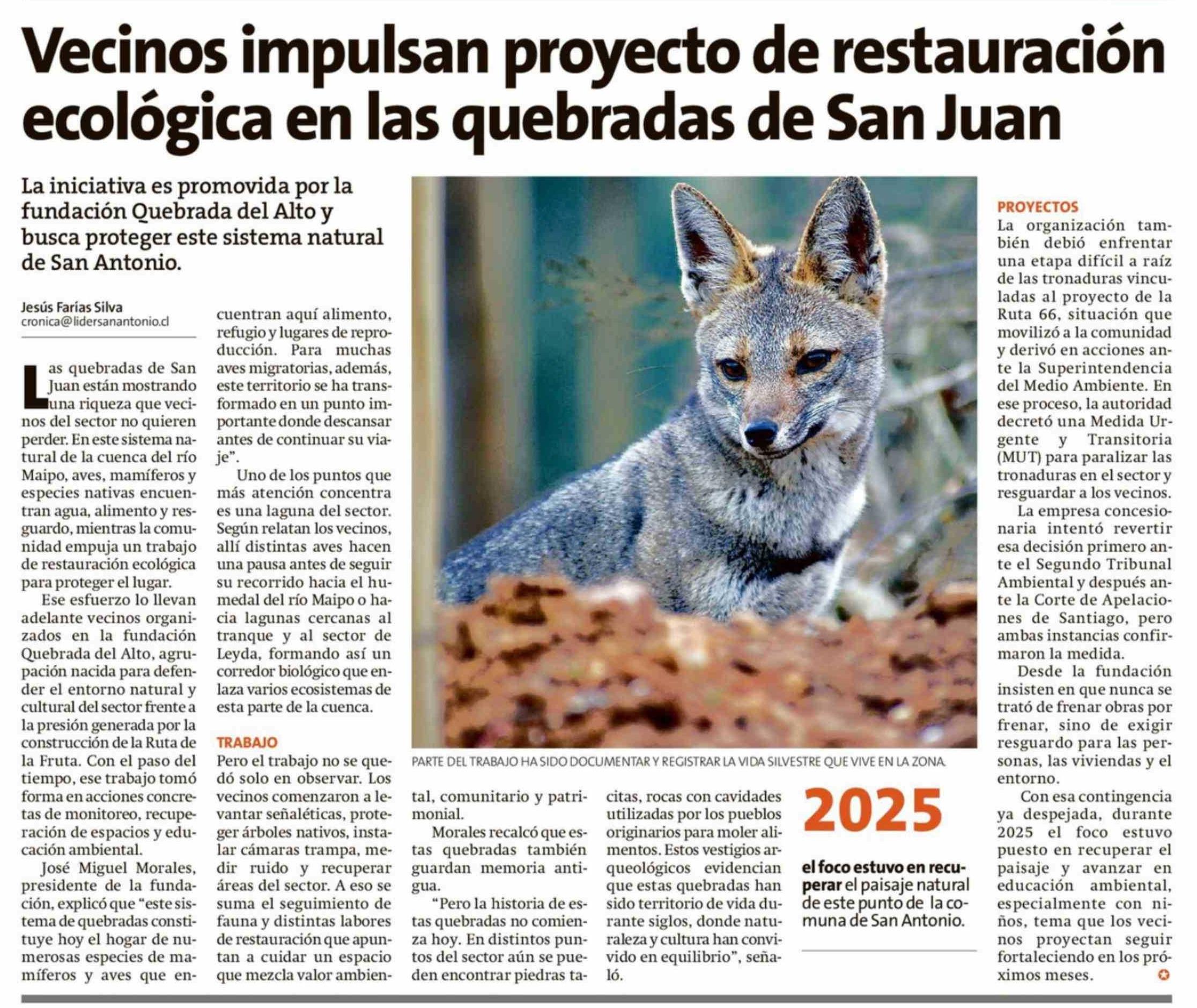 Vecinos impulsan proyecto de restauración ecológica en las quebradas de San Juan