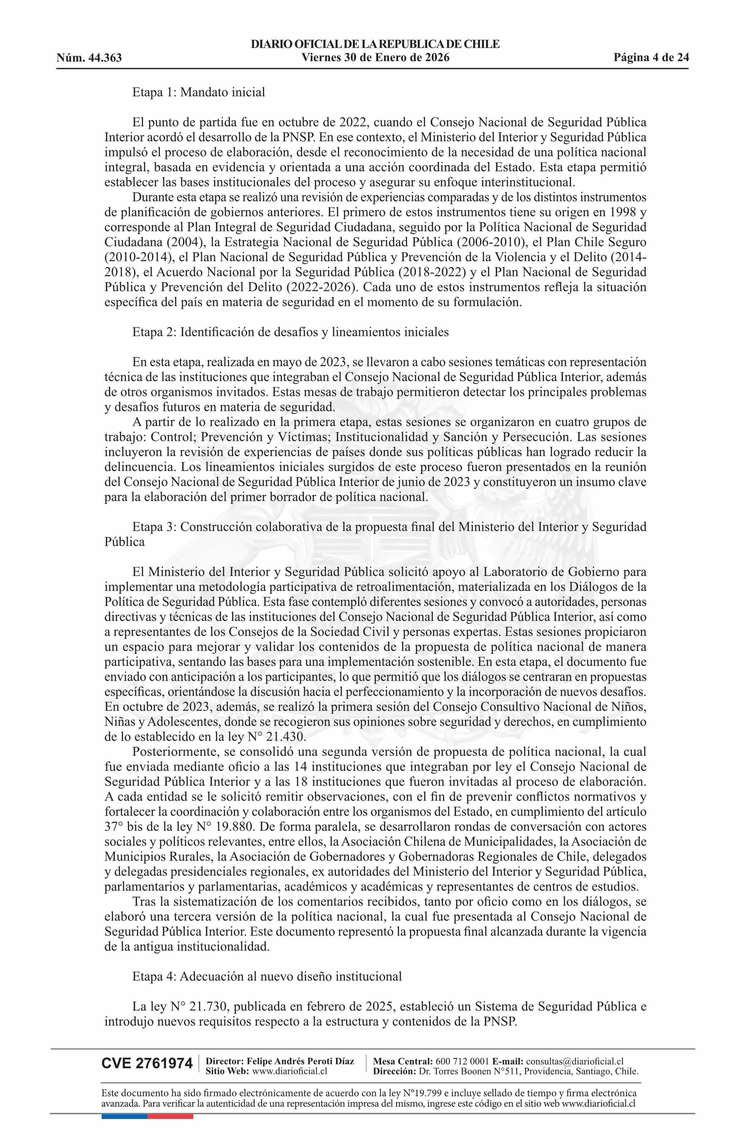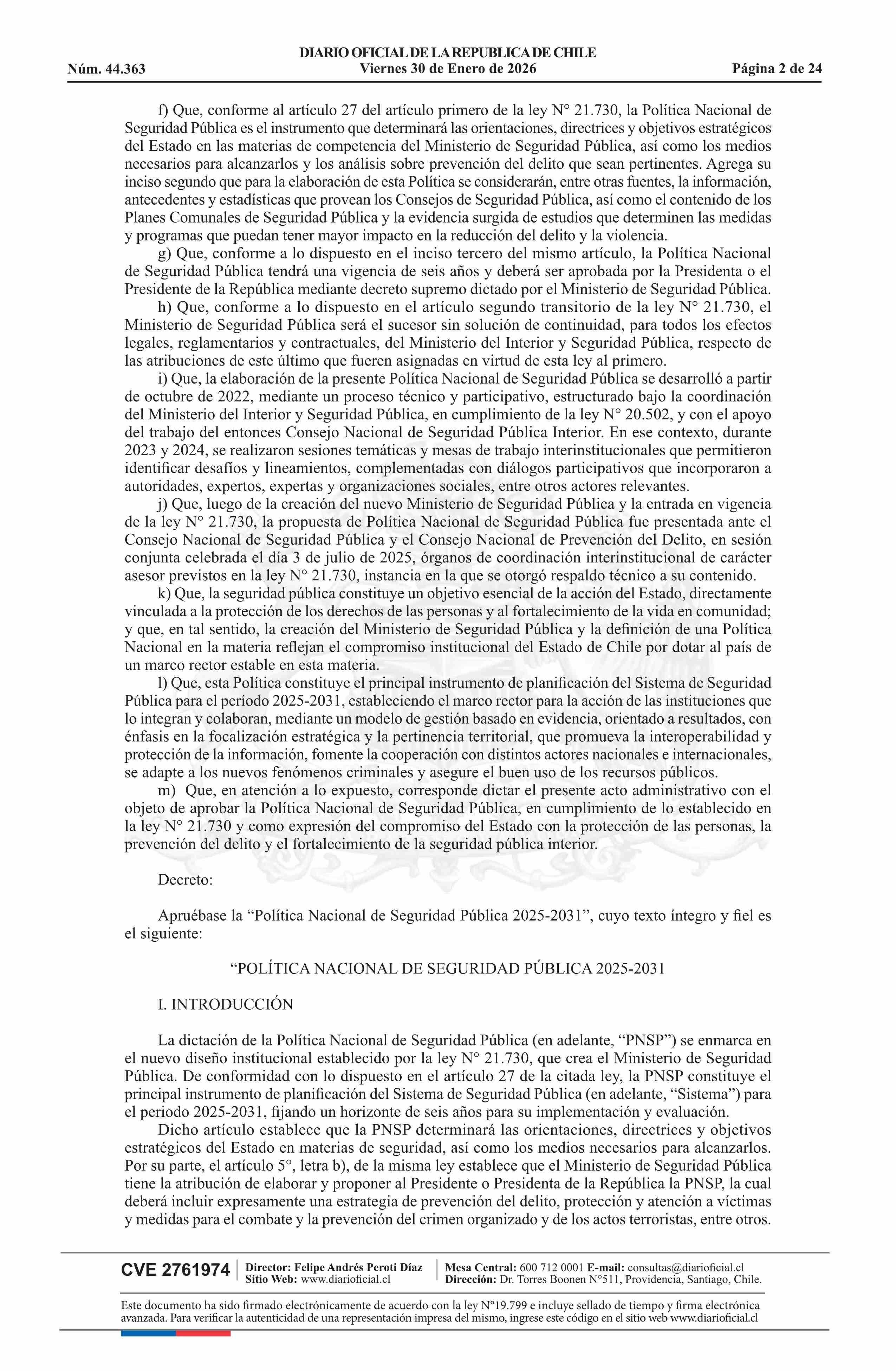 | Título: | Decreto número 96, de 2025.- Aprueba Política Nacional de Seguridad Pública |