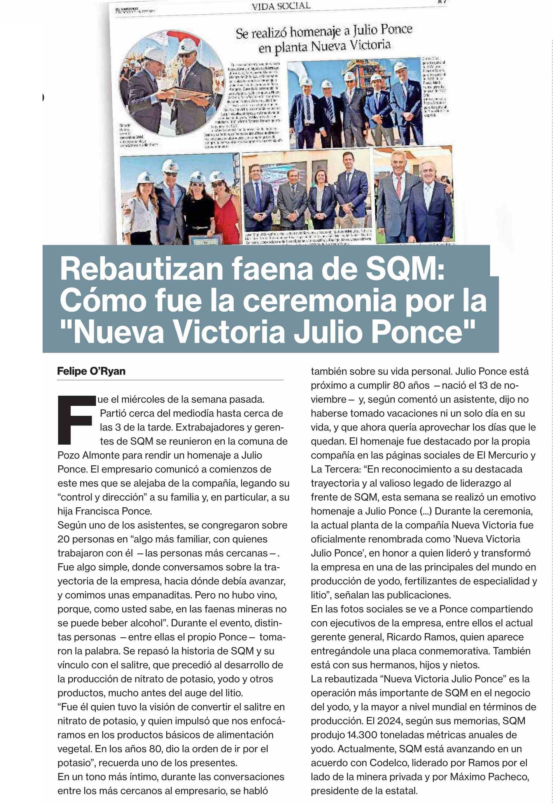 Rebautizan faena de SQM: Cómo fue la ceremonia por la "Nueva Victoria Julio Ponce"