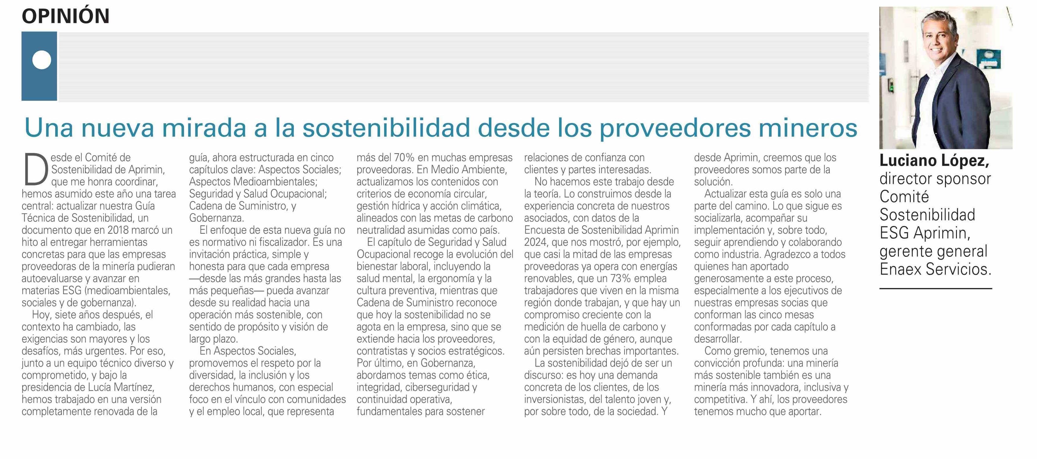 COLUMNAS DE OPINIÓN: Una nueva mirada a la sostenibilidad desde los proveedores mineros