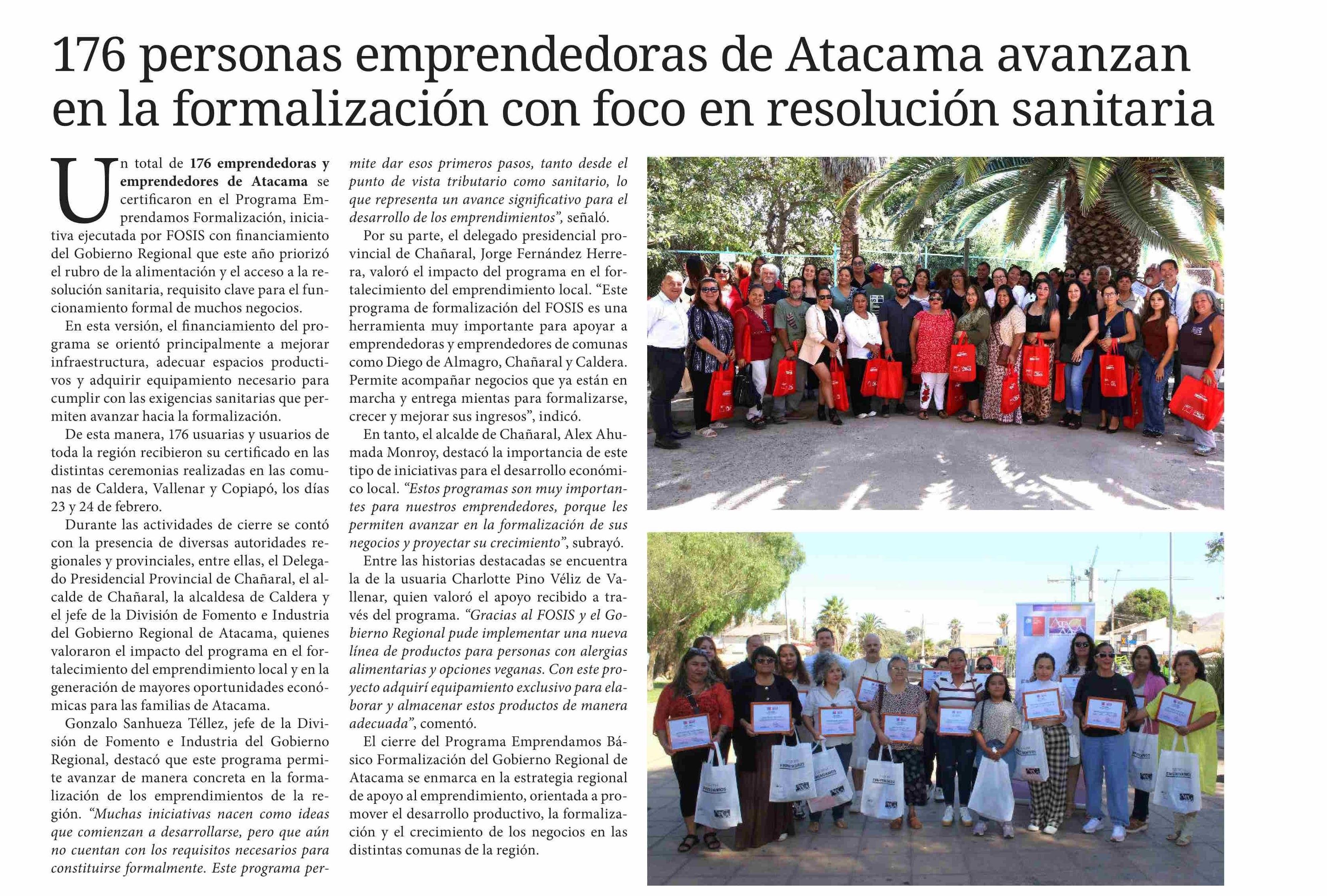 176 personas emprendedoras de Atacama avanzan en la formalización con foco en resolución sanitaria