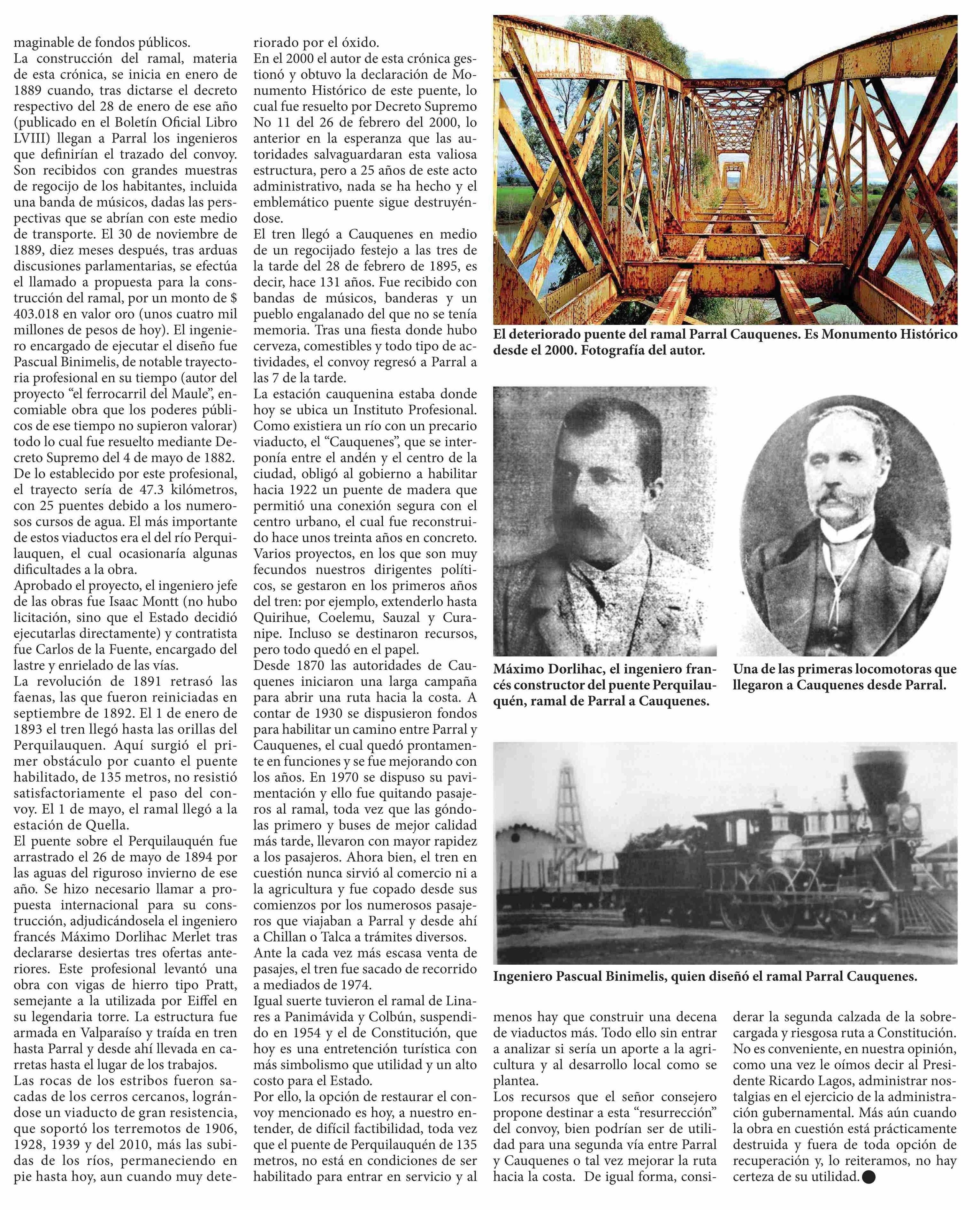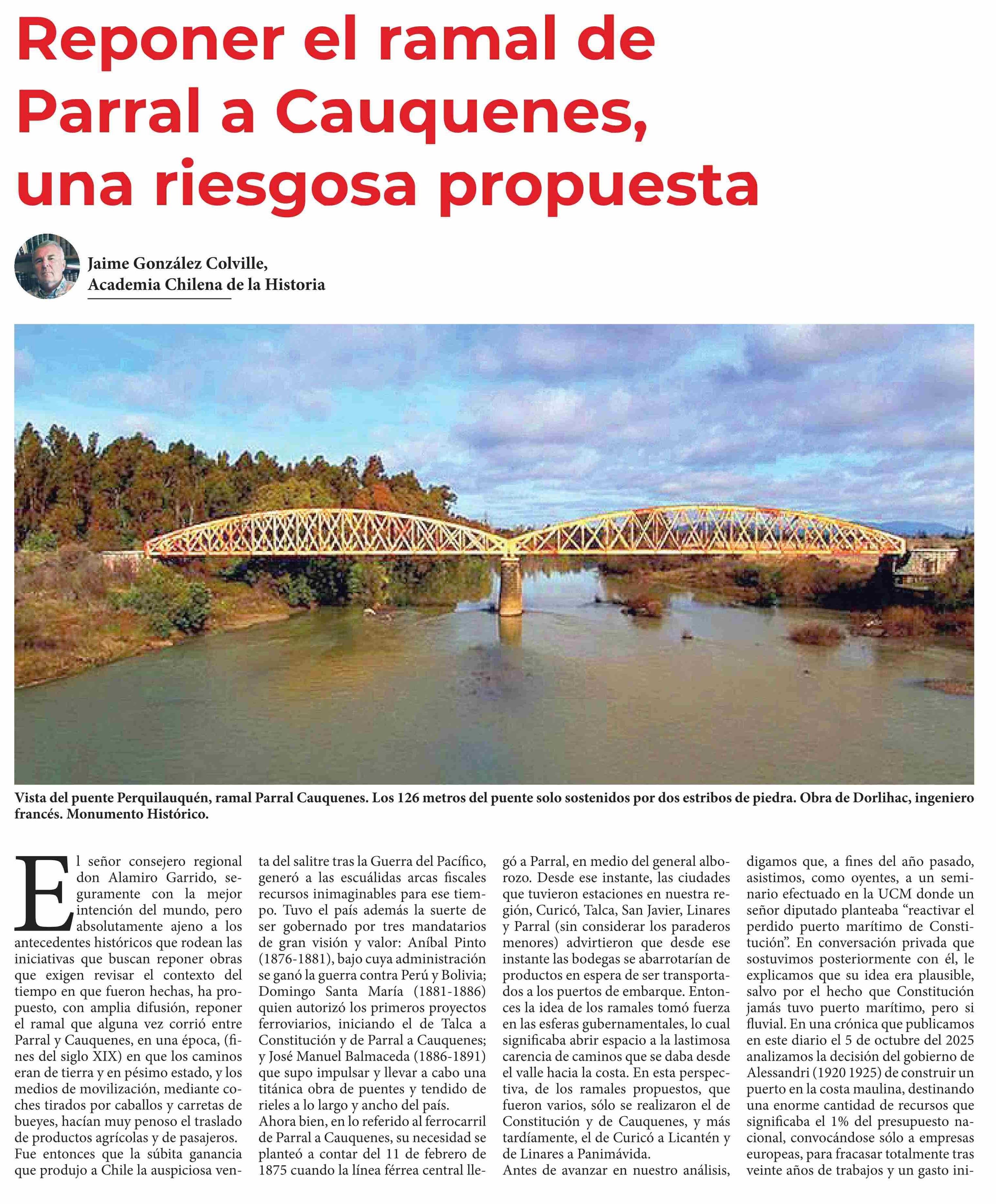 Reponer el ramal de Parral a Cauquenes, una riesgosa propuesta