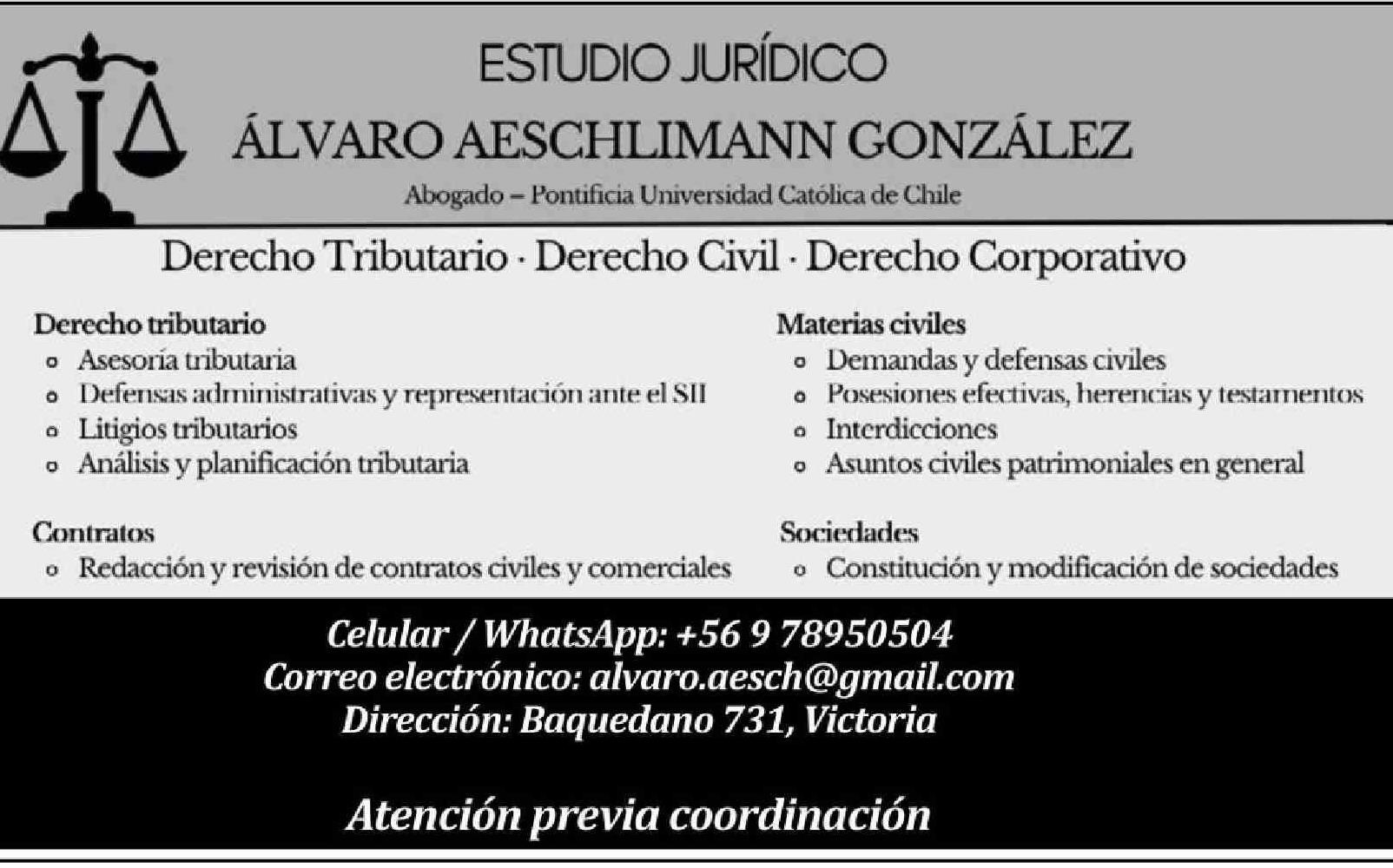 Aviso Publicitario: ESTUDIO JURÍDICO ÁLVARO AESCHLIMANN GONZÁLEZ