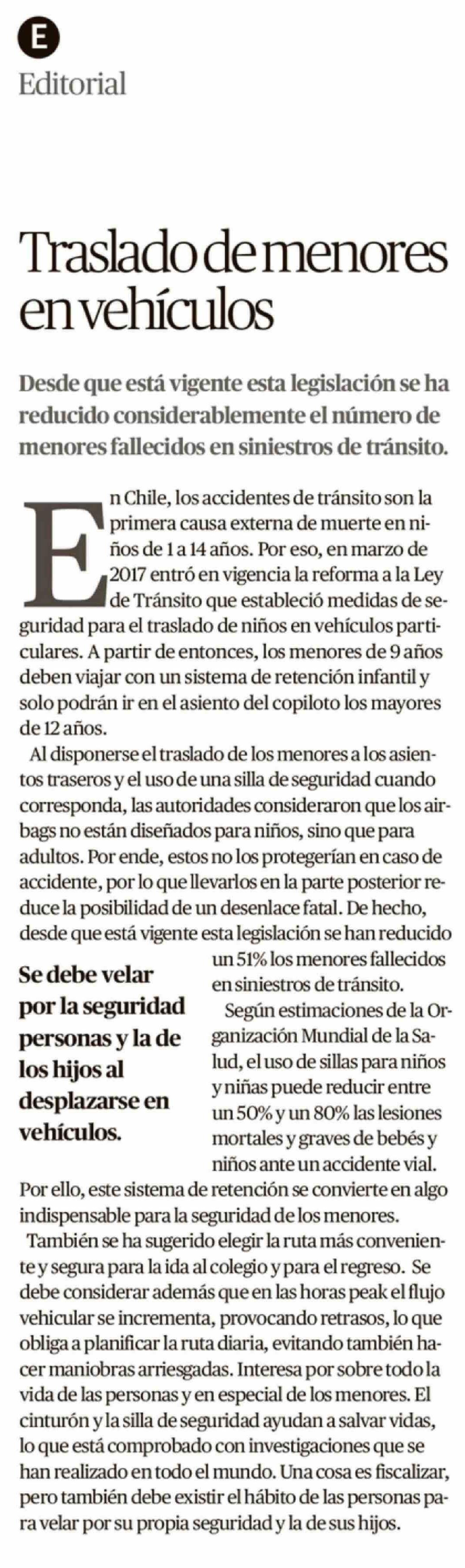 Editorial: Traslado de menores en vehículos