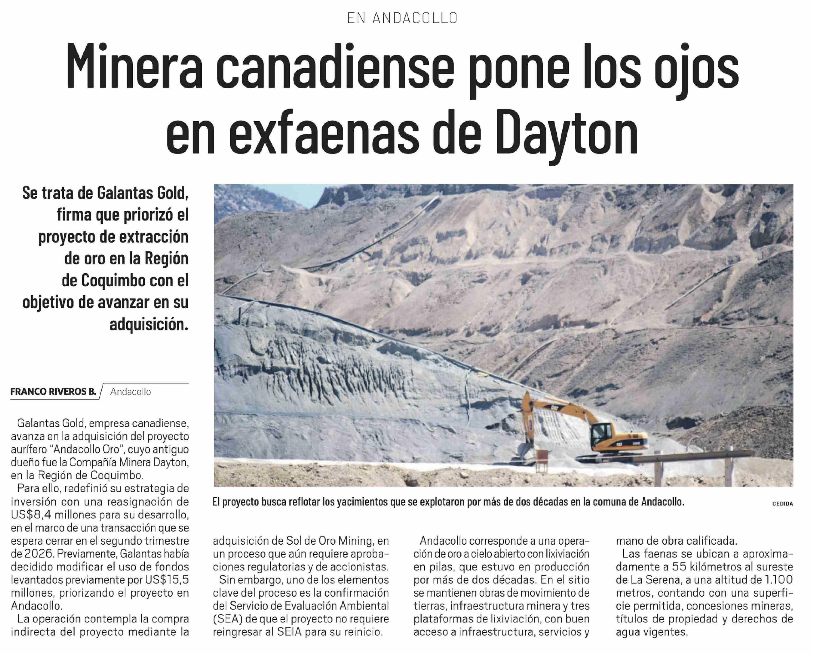 Minera canadiense pone los ojos en exfaenas de Dayton