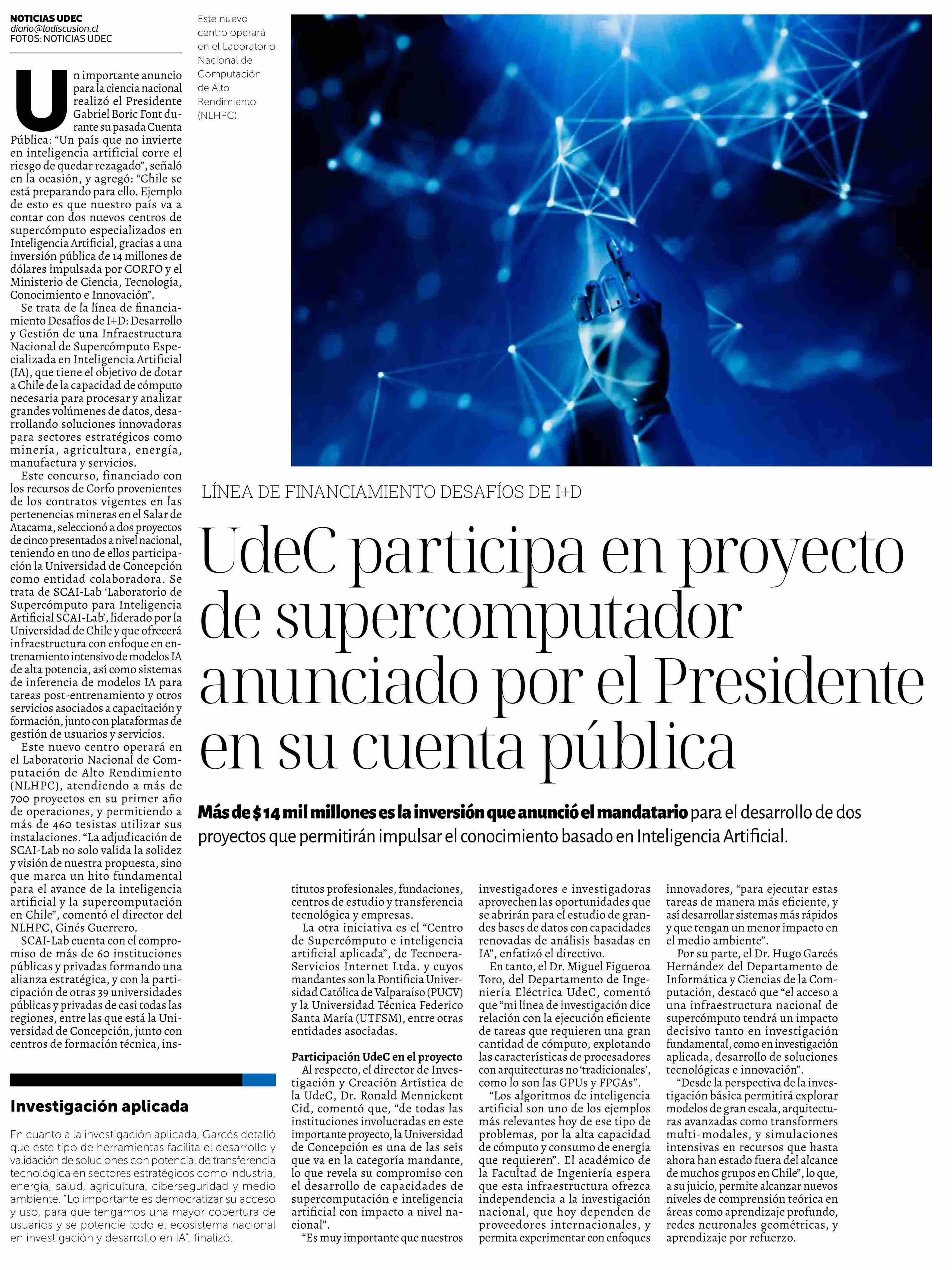 UdeC participa en proyecto de supercomputador anunciado por el Presidente en su cuenta pública