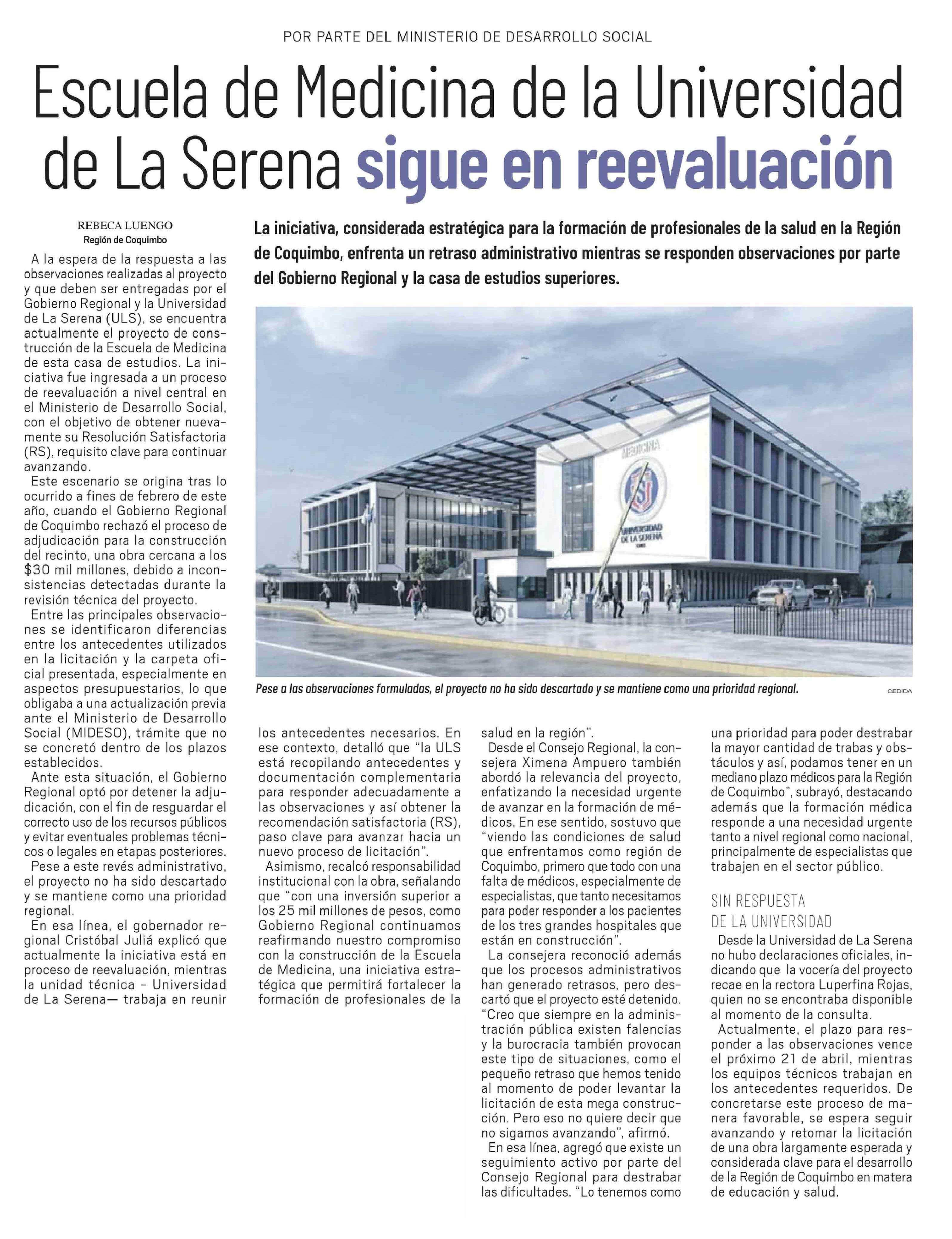 Escuela de Medicina de la Universidad de La Serena sigue en reevaluación
