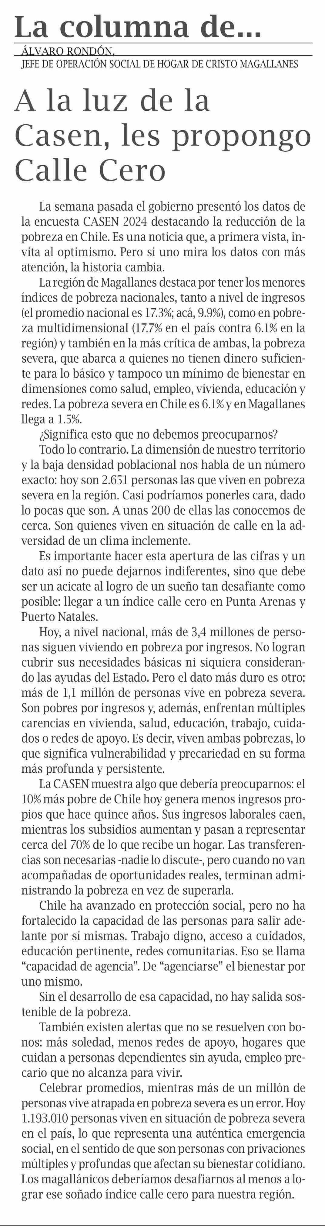 Columnas de Opinión: A la luz de la Casen, les propongo Calle Cero